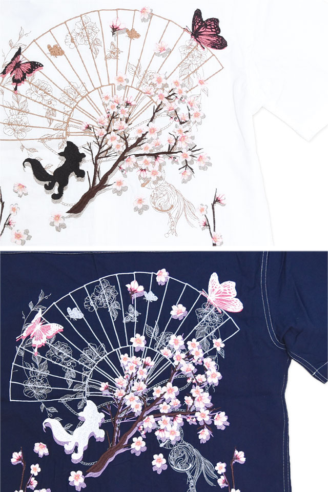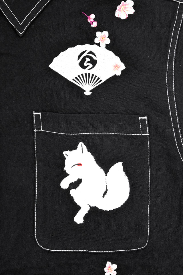 愛らしい狐のキャラクターが主役の【今昔】から「桜演舞半袖レギュラーシャツ(KJ-29274)」のご紹介です。 お馴染みの今昔狐に桜と扇子を組み合わせた、上品なデザインの半袖シャツです。 それぞれのボディーカラーによって用いる色味にも変化を持たせ、異なる表情に仕上げています。 フロント左胸にはポケットが縫い付けられており、表面には狐をワンポイントで刺繍しました。 ボディーには柔らかな綿生地を採用。 | |||||||||||||||||||||||||