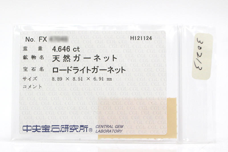 ソーティング記載 | 天然ガーネット ロードライトガーネット サイズ 8.89×8.51×6.91mm |
