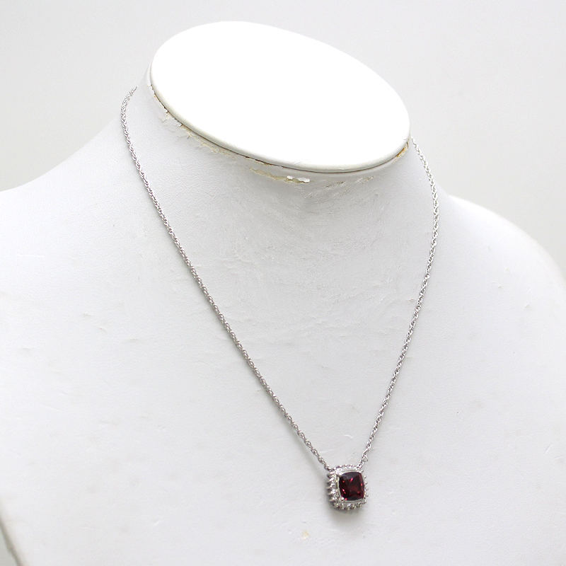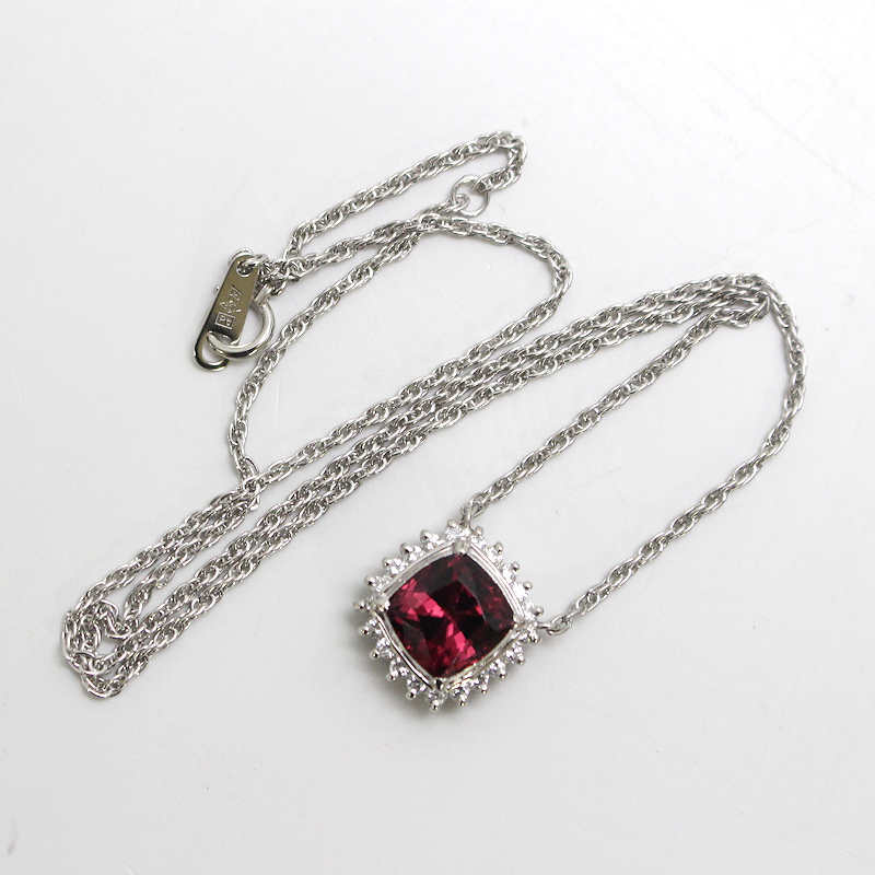 コメント | 紫みのある赤色の輝きが美しいロードライトガーネットのネックレス★ 大人びたワインカラーが特徴的で、首元を上品に飾ってくれます♪ Pt850・Pt900という素材を使っておりますので、プラチナ資産としてもオススメ! 中古品のため細かな擦れキズがあり、一般的な使用感があります。 この機会に是非いかがでしょうか? |