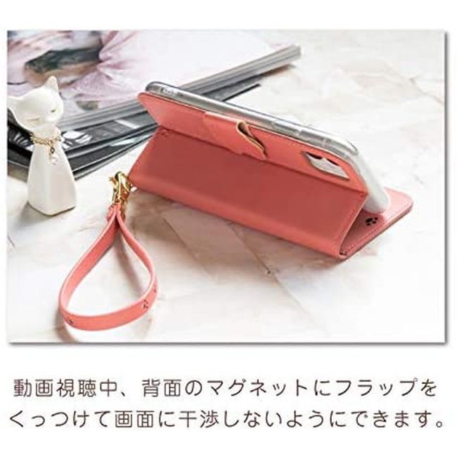かわいい猫をモチーフにした上品な手帳型ケース。 簡単に開閉できるサイドマグネットホールド、 ハンドストラップ、カードポケット付のケースです。 スタンド機能 ハンドストラップ付属 取り外し可能