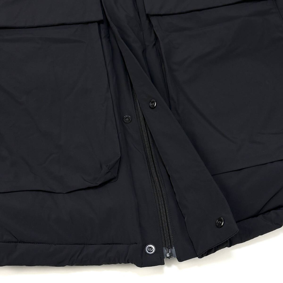 フロントは比翼仕立てのファスナー仕様で、サイドからもアクセス可能な大容量ポケットを両胸に配置。