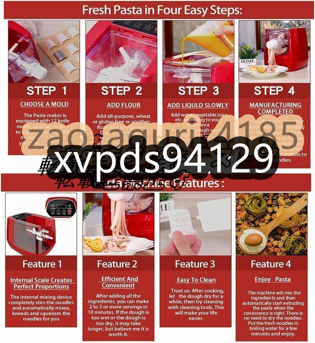製麺プロセス中に、野菜ジュース、卵、小麦粉、スパイス、ハーブを使用してパスタをカスタマイズして、美味しく、健康的で、カラフルなグルテンフリーのパスタを作ることができます。また、13 種類のパスタ料理でさまざまな種類のパスタと麺を試すことができます。 夕食に彩りを添えて、お子様も食べるのが大好きになります。