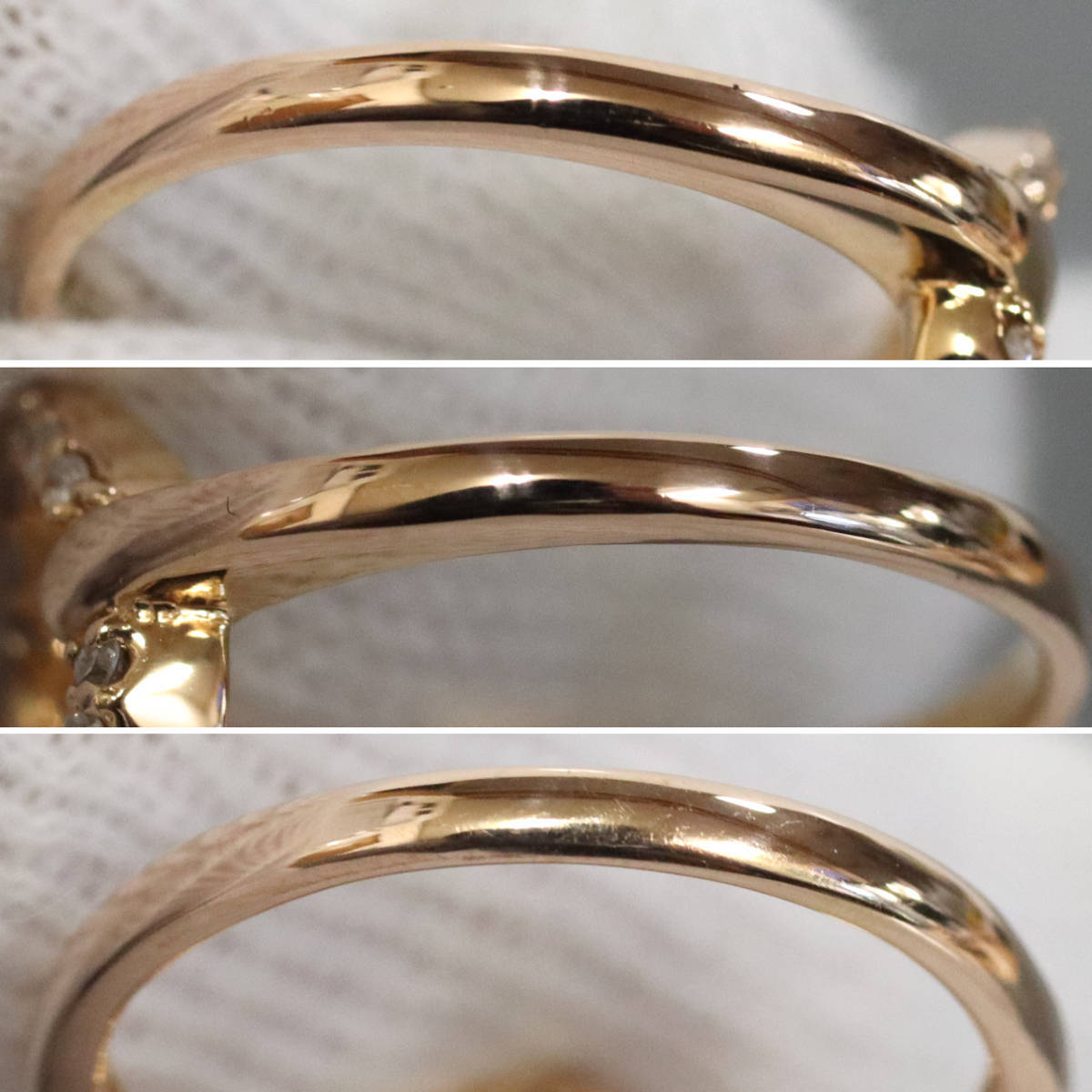 ヴァンドームのK18PGダイヤモンドリングの中古品です。 ハート形のかわいらしいデザインです。 セットされたダイヤモンドは全体的にインクルージョンが少ないです。 地金には小傷がございます。