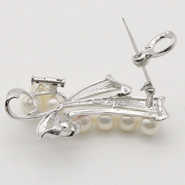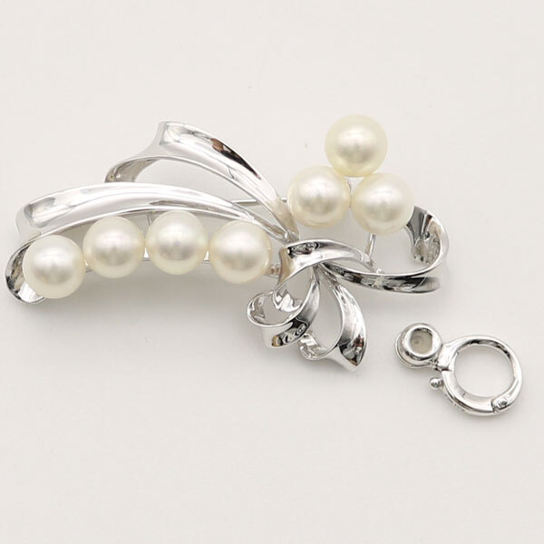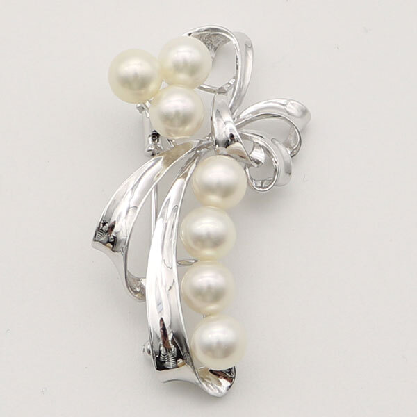 | 真珠 パール ブローチ あこや真珠 パールブローチ 6.5mm-7mm 7pcs リボン デザイン シルバー アコヤ本真珠 冠婚葬祭 卒業式 入学式 おしゃれ シンプル 上品 フォーマル |