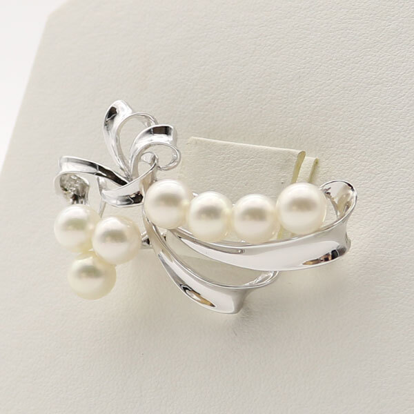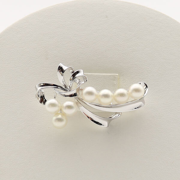 あこや真珠6.5mm-7mmパールを7pcs使ったシルバー製リボンのデザインブローチです。 |