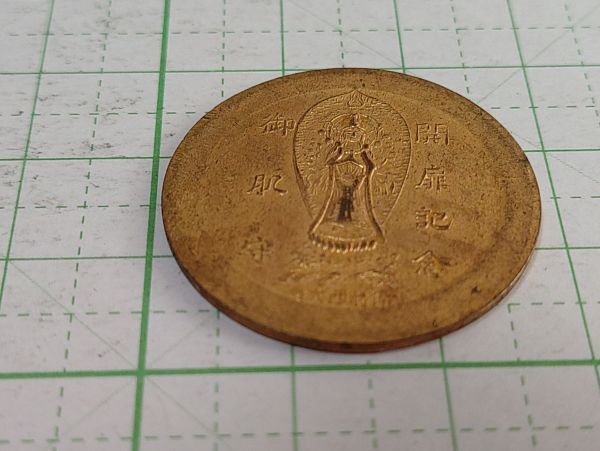 金陵山西大寺 大正15年 開扉記念 お守り 絵銭 古銭 約6g
