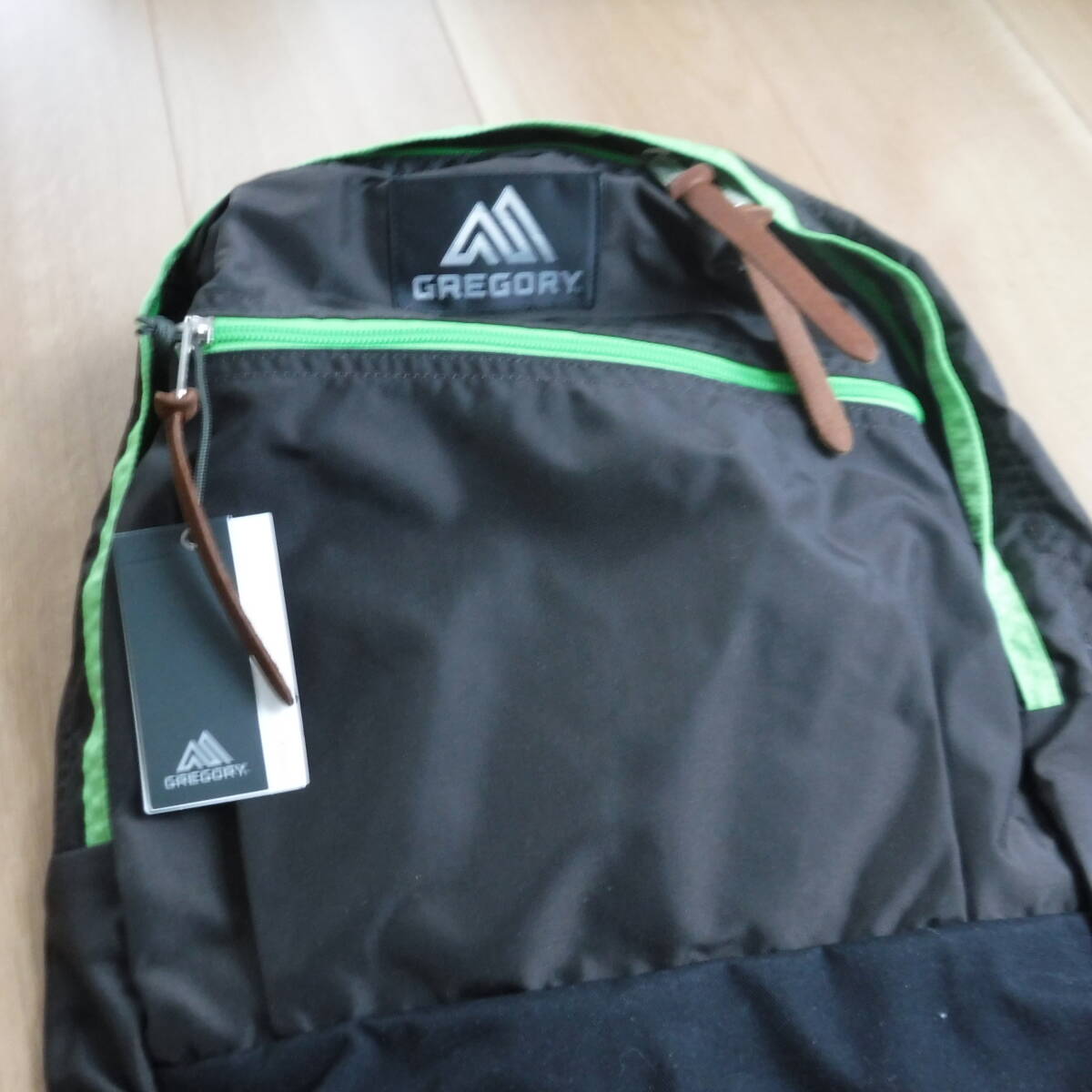 グレゴリーのリュックサックで、形はカジュアルデイ、ブラックとダークブラウンの中間色×ビビッドグリーンです☆サイズ横29センチ縦43センチマチ15センチ位でたっぷり入るデザインです♪3/4周近く開くチャックで出し入れしやすく、表面に大きめチャック式ポケット1つあり、更に内側に2か所ポケット、2か所ペン差しがあり便利☆グレゴリーのリュックはいくつも持っていますが、肩にあたる部分がかなり分厚いので、結構重い荷物を入れて長時間持っていても疲れませんのでかなりお勧めです(個人感想)!ブラックにとっても綺麗なグリーンの縁取りでオシャレ☆なんにでも合わせやすい色合いで、汚れも目立ちにくく、男女年齢服装季節問わず使えると思います♪未使用タグ付き新品ですが、個人保管につき、多少の汚れやシワ、擦れなどある場合がありますので、ご理解ある方、ノークレームノーリターンでお願いします!