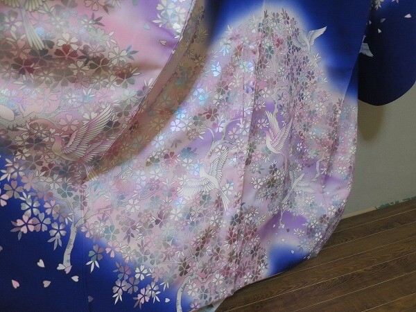 成人式 振袖と帯のセット ブルー系 ハト 鳥 柄 シルバー箔