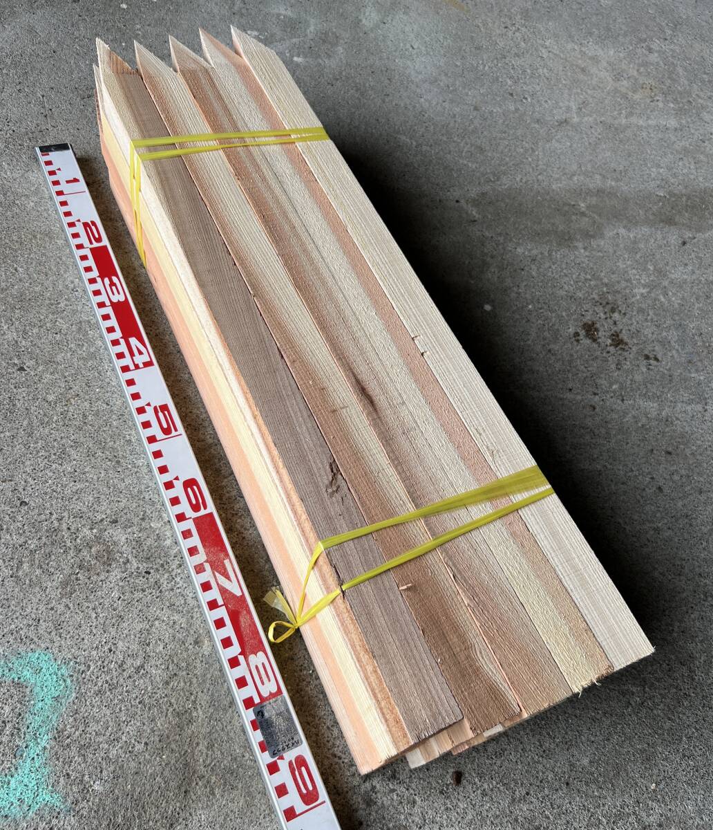 説明 | ◇ 自己紹介もお読みください ◇ 杉、天然乾燥・粗木材の角杭20本セットです。 土木用・測量杭・DIY・ガーデニング・支柱・木工など、様々な用途にお使いいただけます。 木地のままなので、いろいろな塗料を塗って楽しめます。 画像は商品例です。同等のものをお送りします。 製作には細心の注意を払っていますが、製作中に多少のキズ・凹み等付くことがあります。 また、手作り品ですので、寸法の誤差が多少あります。 了解の上、ノークレーム、ノーリターンでお願いします。 価格は送料込みです。 |