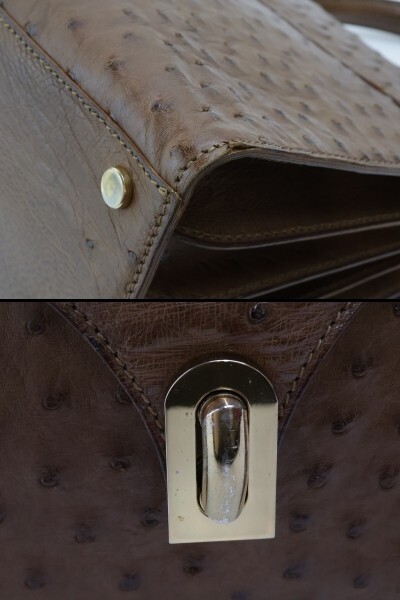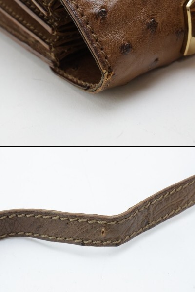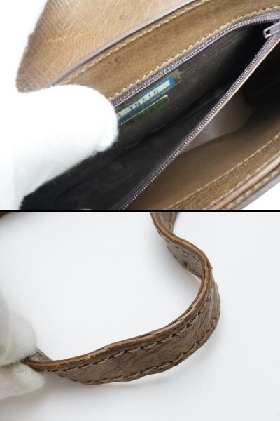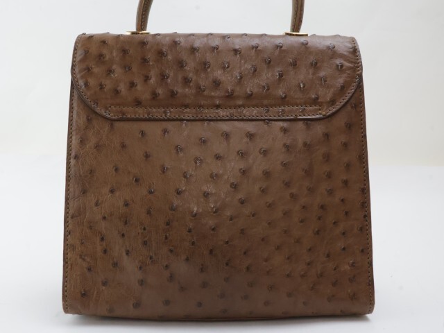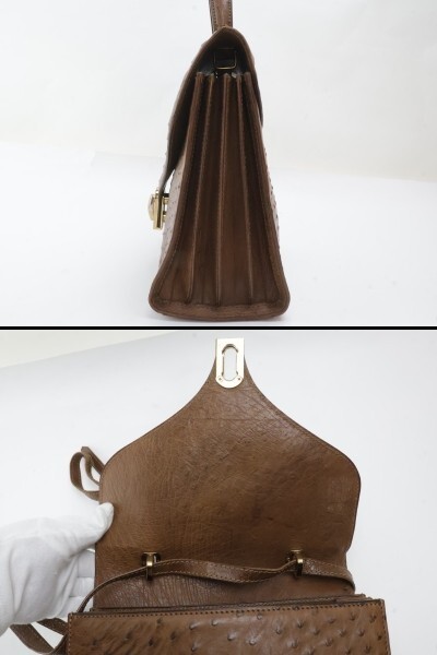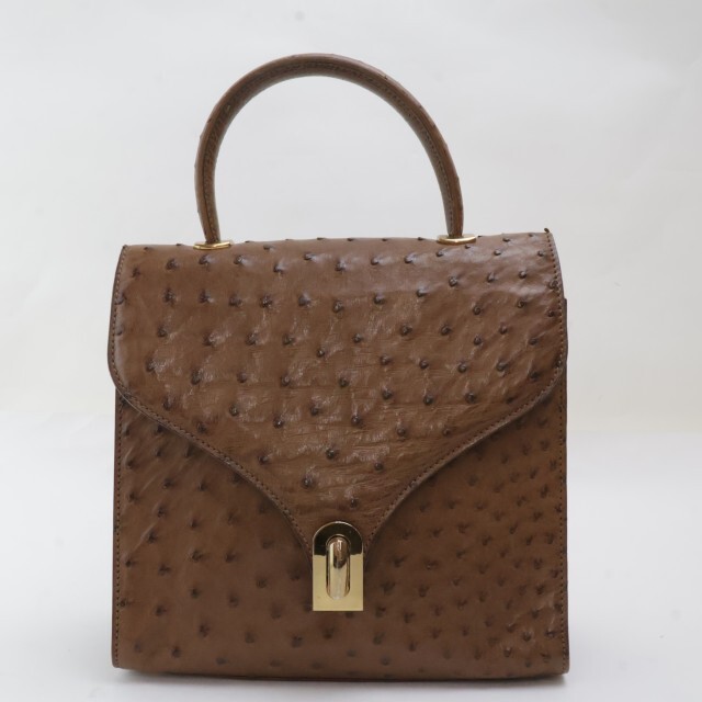 2503-43 ブランド不明 ハンドバッグ ショルダーバッグ 2WAY オーストリッチ製 ブラウン 金金具 イタリア製 | |