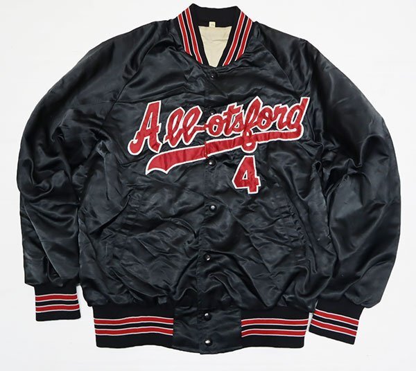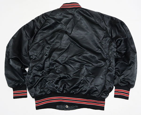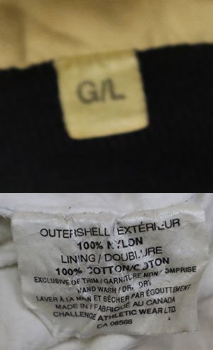 80-90年代頃のアメリカ製(表記はございませんが)のナイロンジャケットで裏地内装はネル地系の黒系x白系x赤色系ラインです。