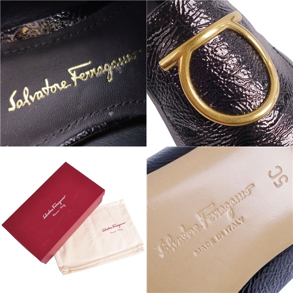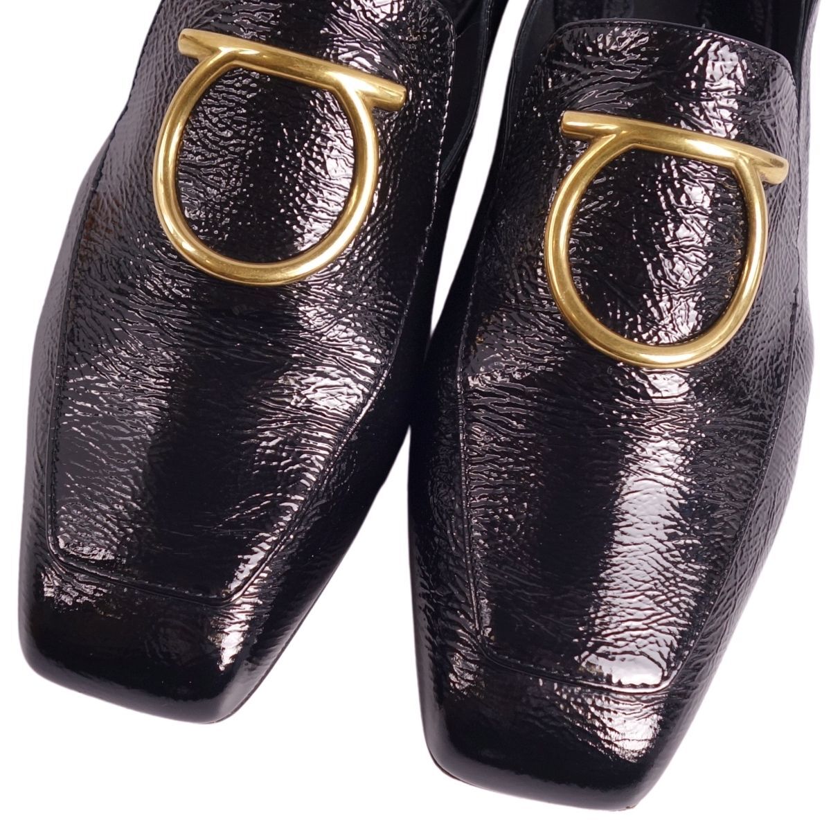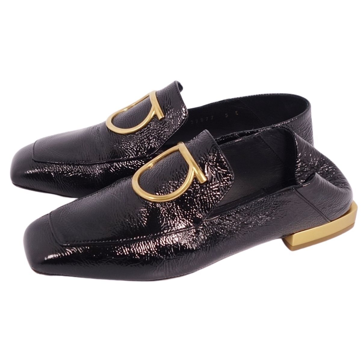 | 美品 サルヴァトーレ フェラガモ Salvatore Ferragamo ローファー ガンチーニ パテント レディース 5C(22.5cm) ブラック |