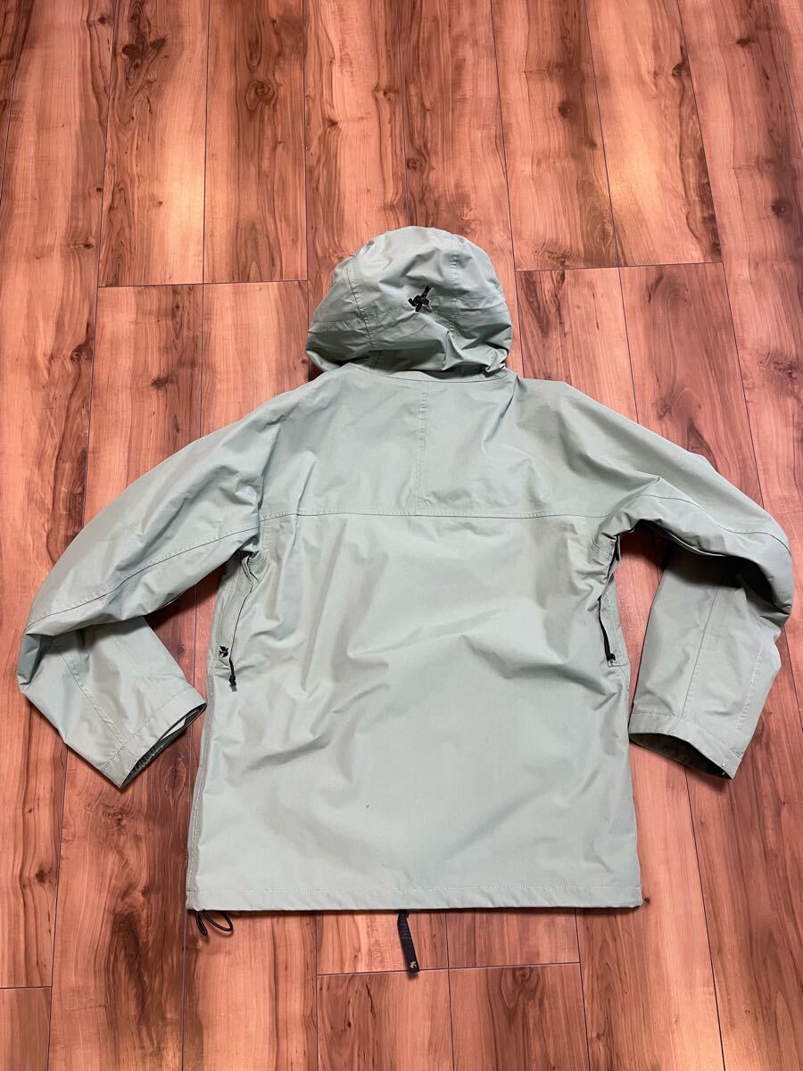 ご覧いただきありがとうございます。グリーンクロージングジャケットになります。家族が数回着用しましたが昨年、今年と使用しない為、出品致します。購入年、モデル名はうる覚えなので不明と致します。気づいた汚れは画像にあります。メンテナンスすれば取れるかもしれません。サイズはSサイズになります。ご検討よろしくお願い致します。