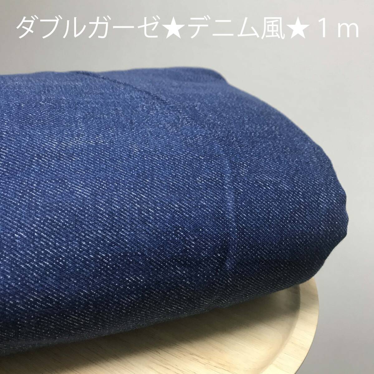 布【1m】デニム風デニム調プリント濃色インディゴ風ダブルガーゼ無地はぎれ生地