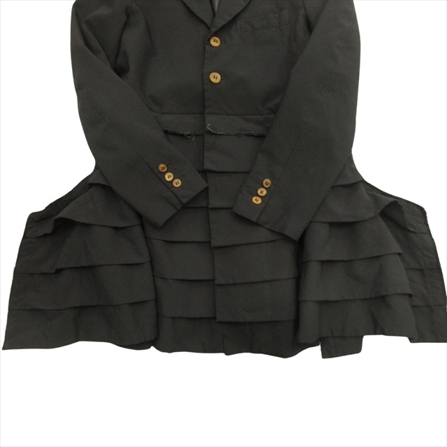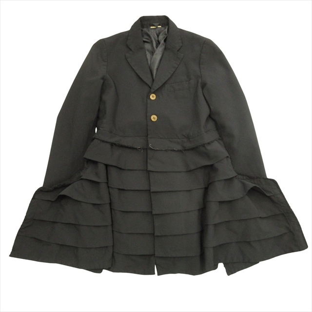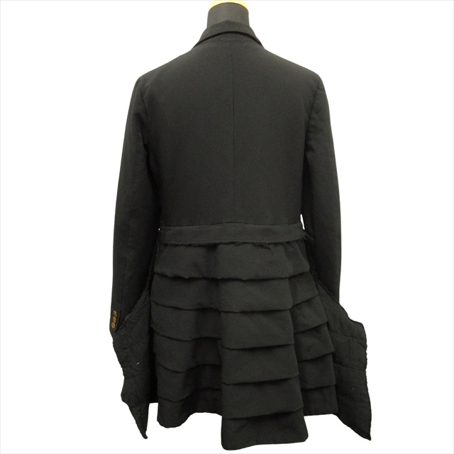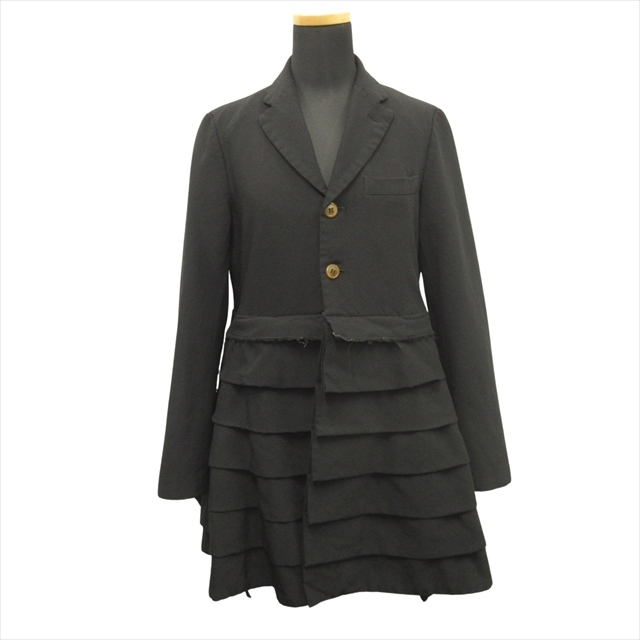17ss コムデギャルソン COMME des GARCONS ポリ縮絨 ティアード チェスター コート テーラード ジャケット XS 黒 ブラック レディース