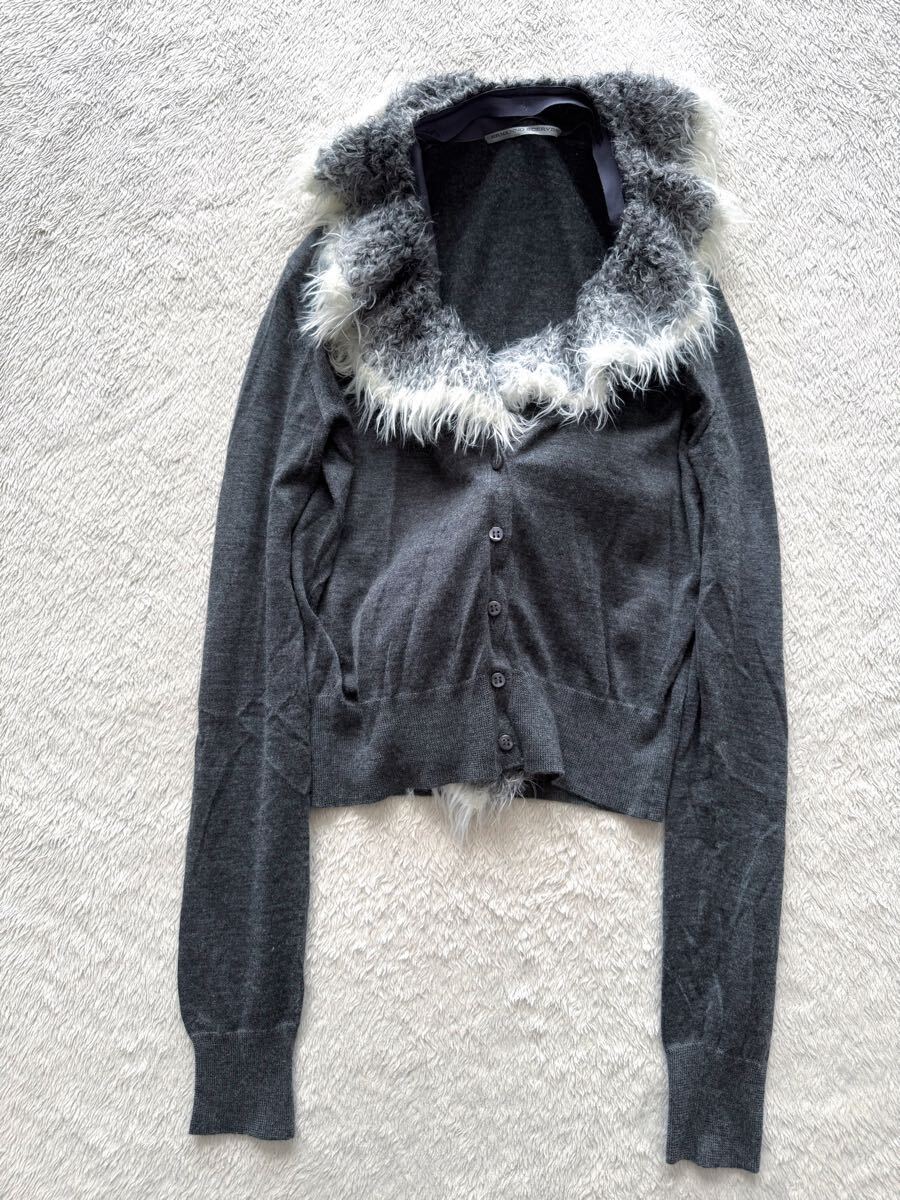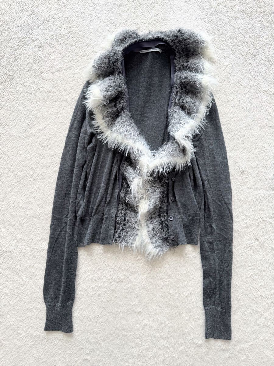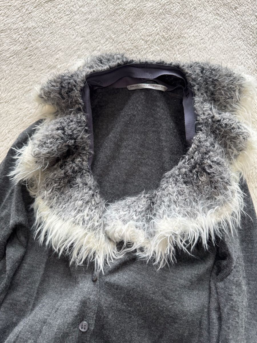 ERMANNO SCERVINO size40 イタリア製 シルクカシミヤカーディガン ファー付き シルクカシミアカーディガン エルマノシェルビーノ
