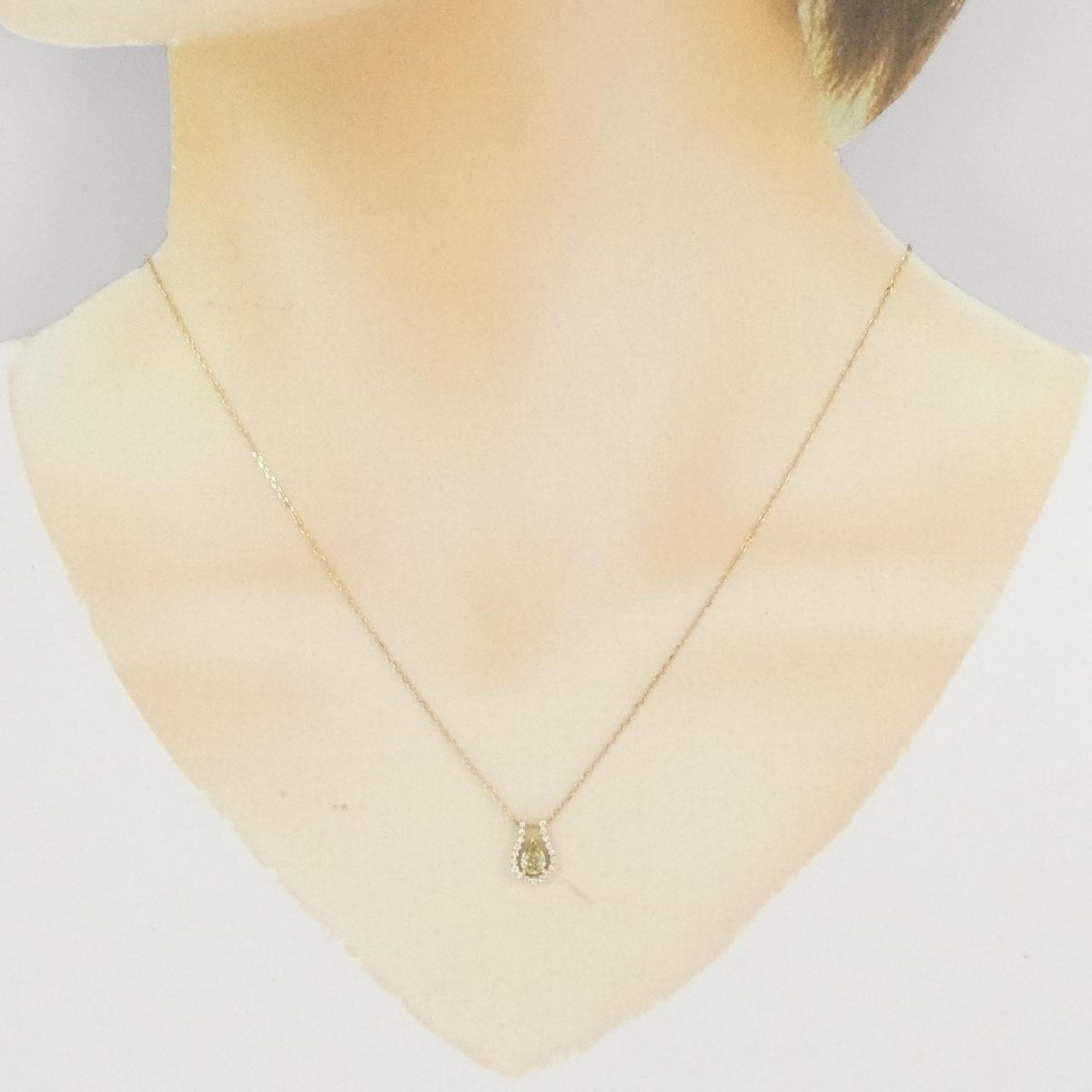 優しい色合いのカラーダイヤモンドがセッティング。 胸元で揺れてキラキラと光を放ちます。