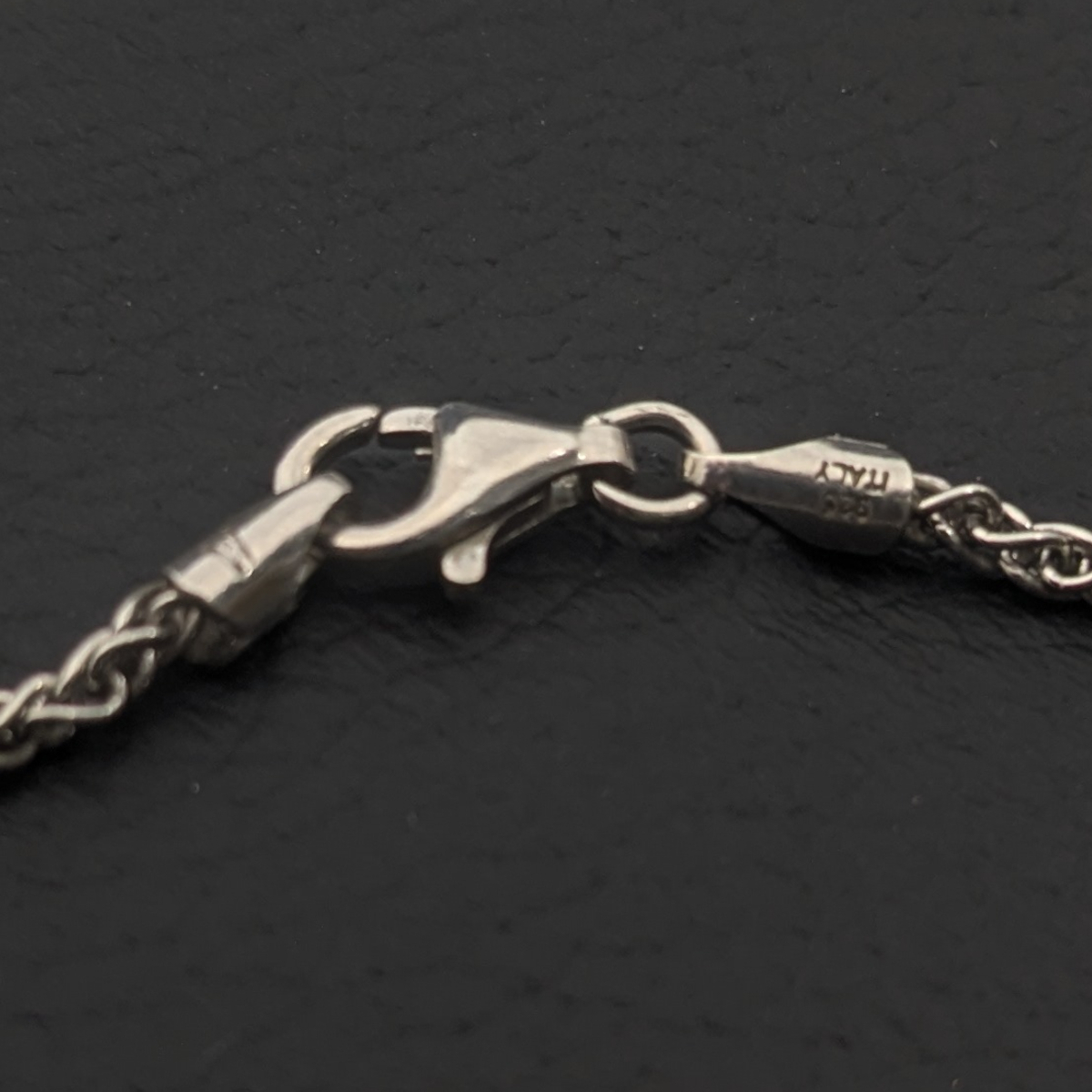 商品説明 | 素材:シルバー925 (スターリングシルバー) 産地:イタリア 年代: 全長約60.5cm、幅約0.2cm、重量約13g、トップ部約2.3cm 出品前に検品をしておりますが、見落としがある可能性もございます。 |