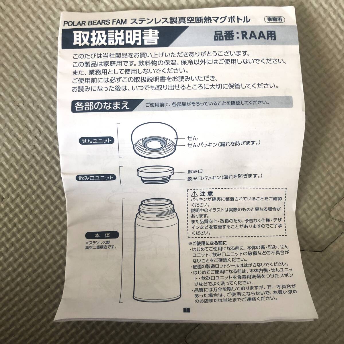 【Ha247】 リーチウィル ステンレス製 真空マグボトル POLAR BEARS FAM 0.48L ホワイト×ブルー RAA-PB48NV 【未使用品 保管品】