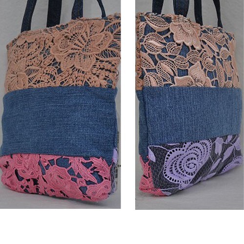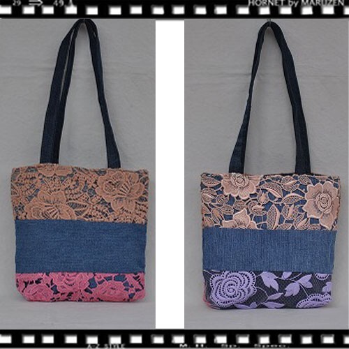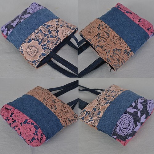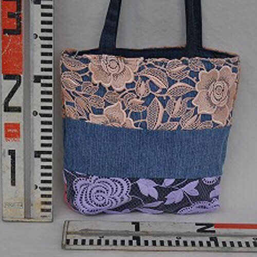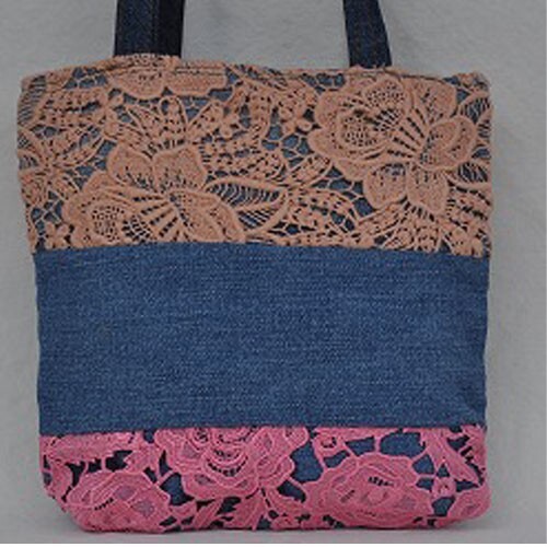 リ・サイクルデニム(中古デニム)と中古レースをバッグにアップサイクルされた商品ですので