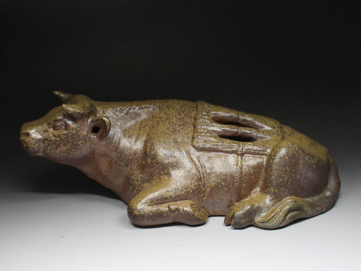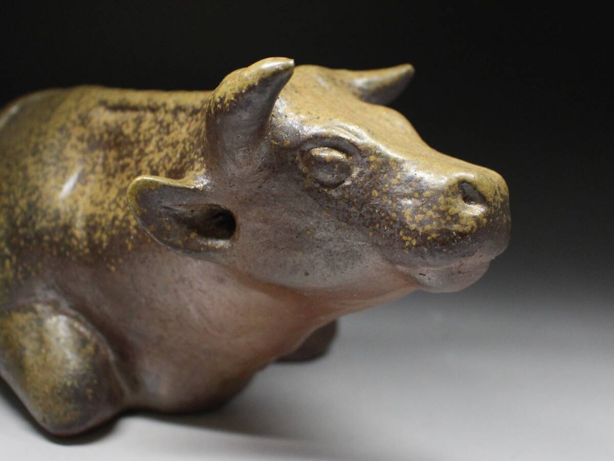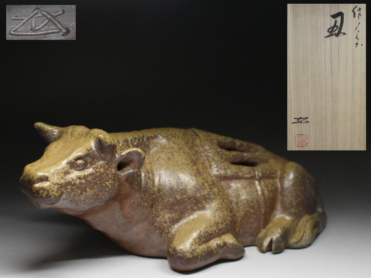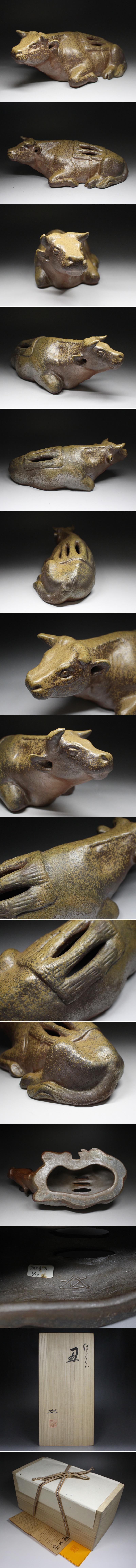 | ■備前■浦上善次 ・丑・置物・伏香炉・牛・干支・床置・縁起物・栞・共布・共箱・茶道具・香道具・f5126h | ||||||||||||||||||||