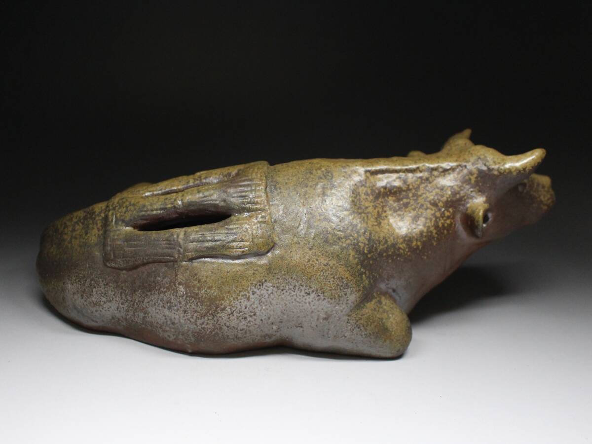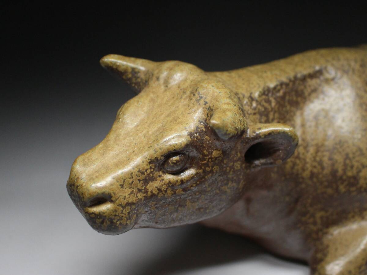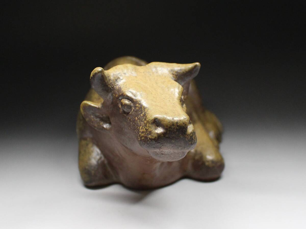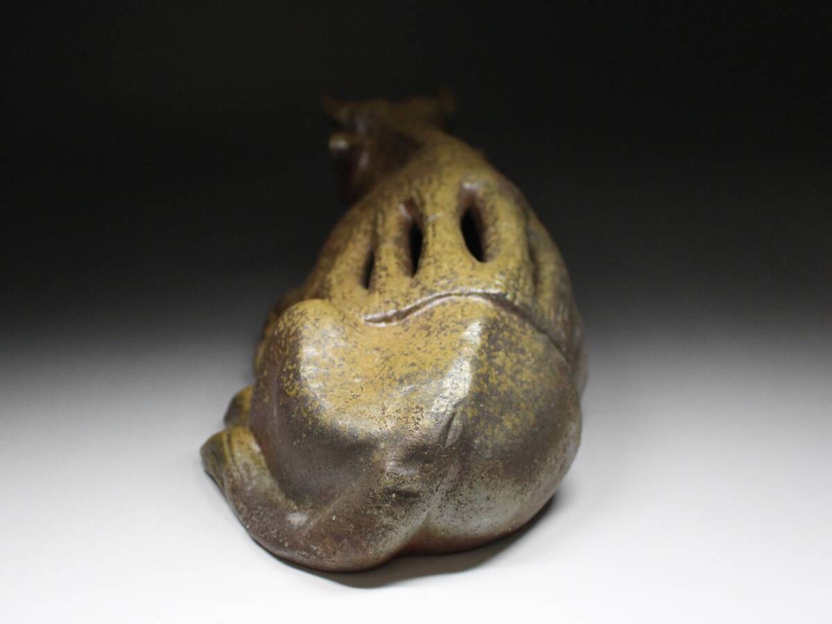 | ■備前■浦上善次 ・丑・置物・伏香炉・牛・干支・床置・縁起物・栞・共布・共箱・茶道具・香道具・f5126h | ||||||||||||||||||||
