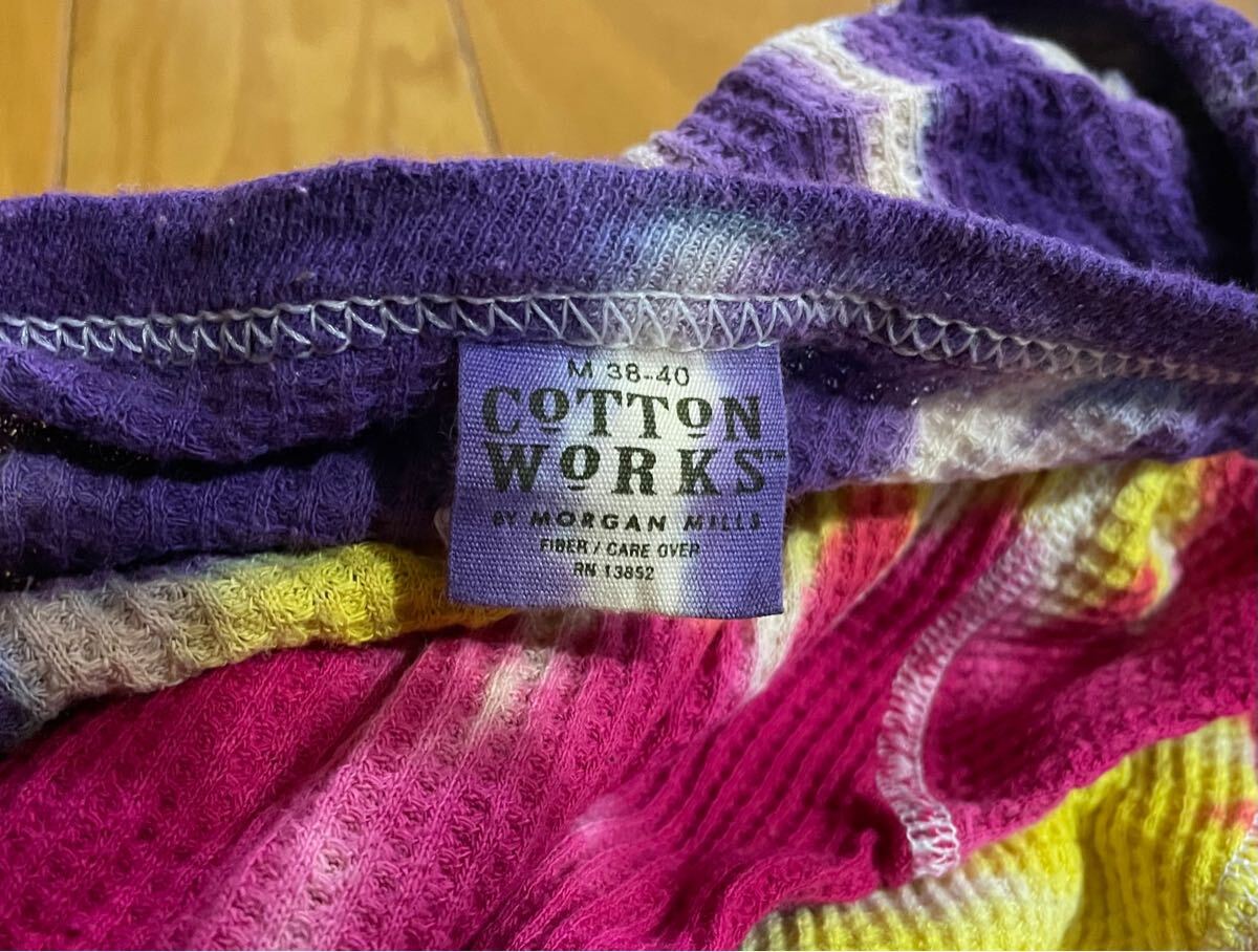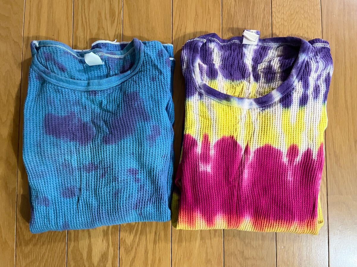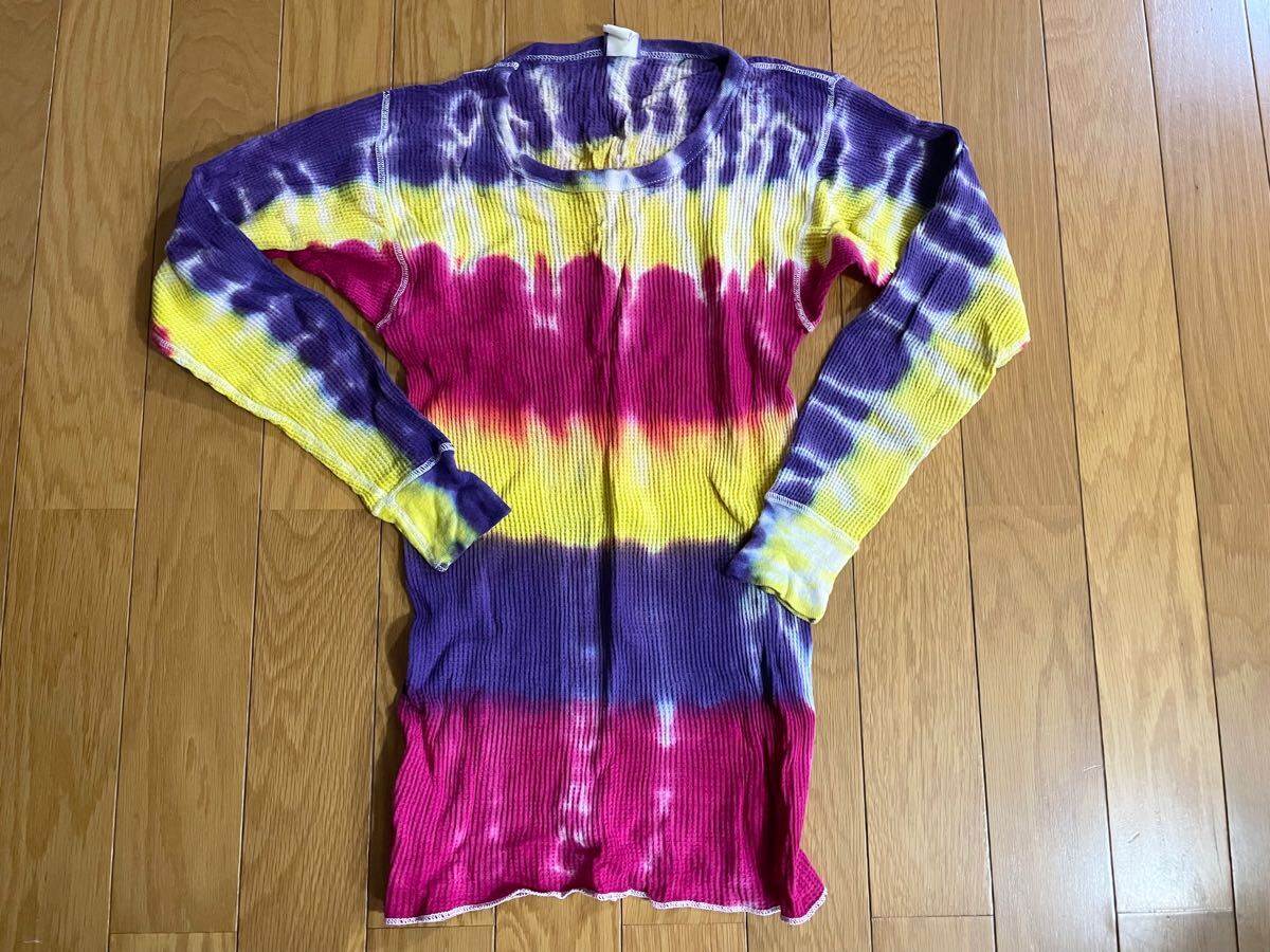 約30年前に購入し、当時着用しておりましたJ.E.モーガン タイダイ柄 サーマル長袖シャツ 2枚セット、全体的に使用感・色落ちはありますが目立つ傷や汚れはありません。