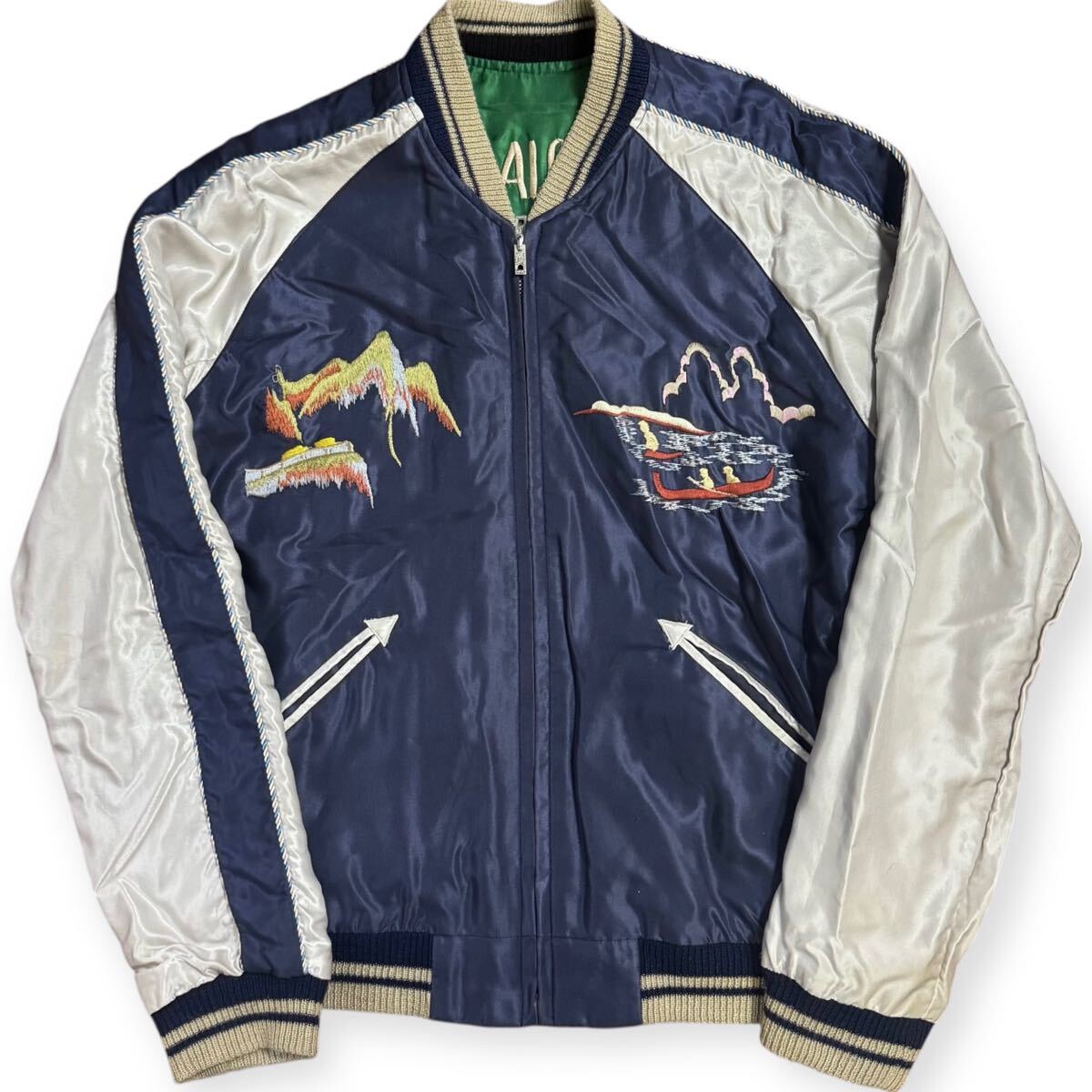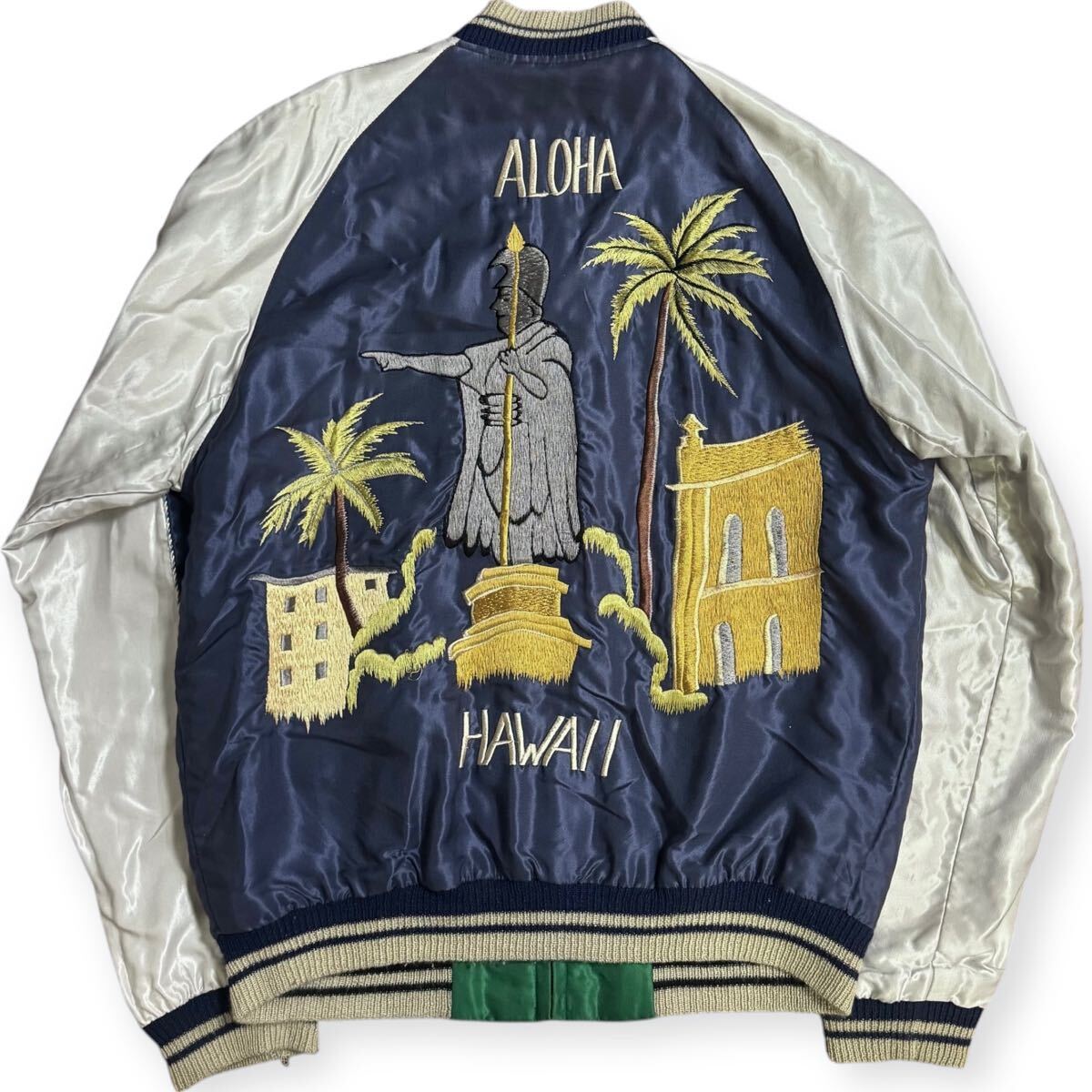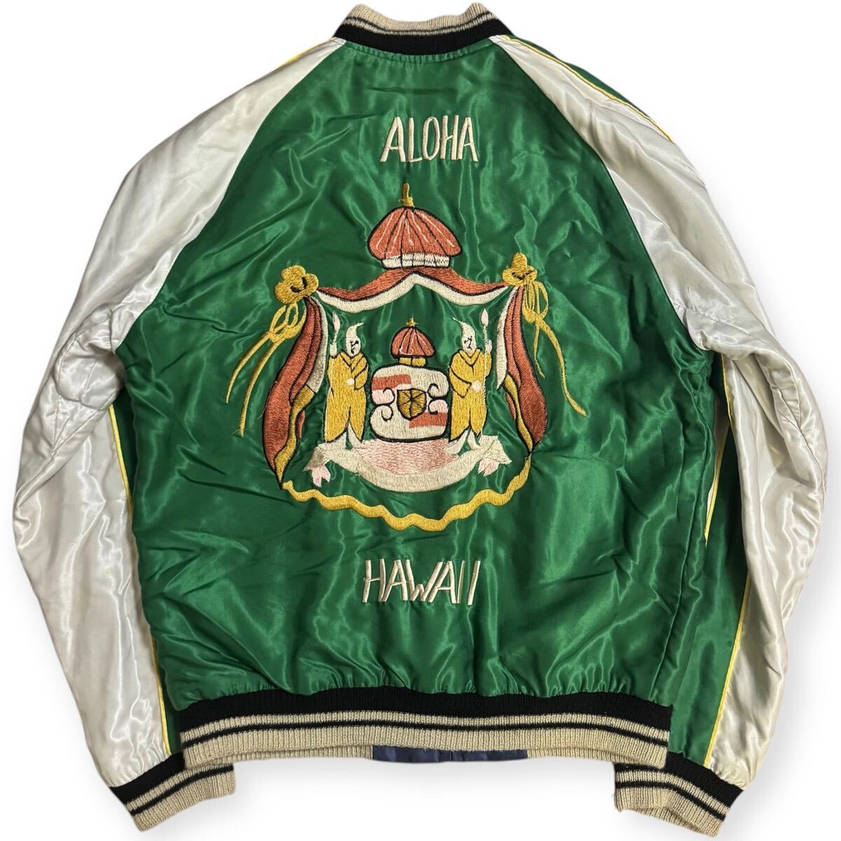 TAILOR東洋 リバーシブル サテン スカジャン カメハメハ大王 ハワイアンクレスト Sサイズ スーベニアジャケット 刺繍