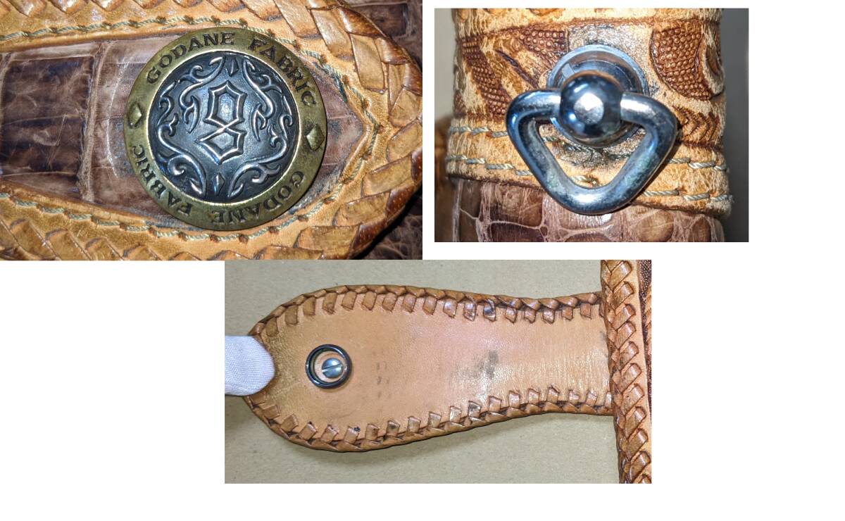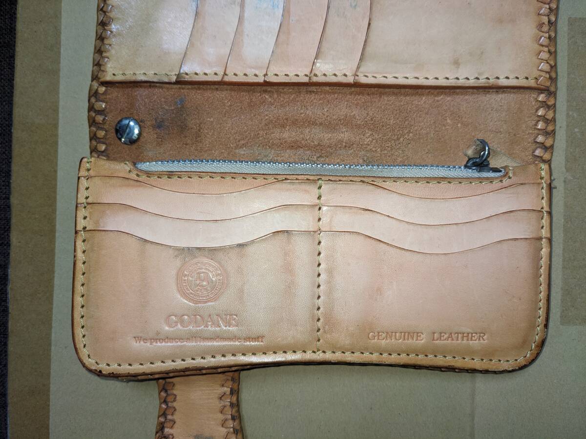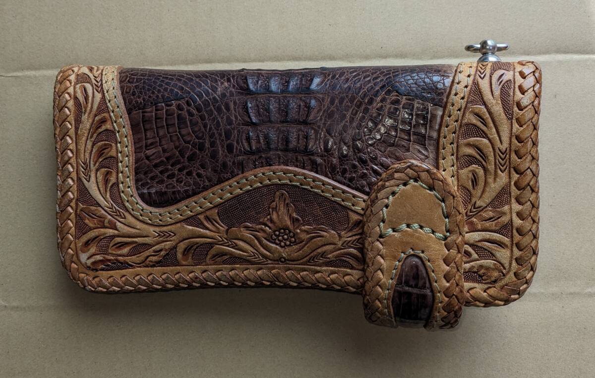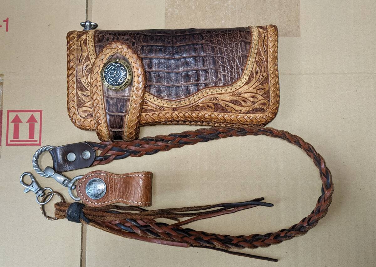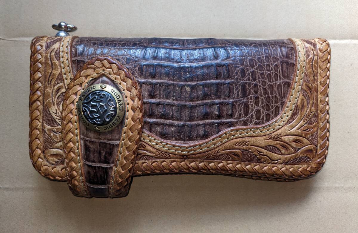 ロングウォレット クロコダイル レザー カービング 長財布 ゴダン GODANE バイカー レザーロープ付き