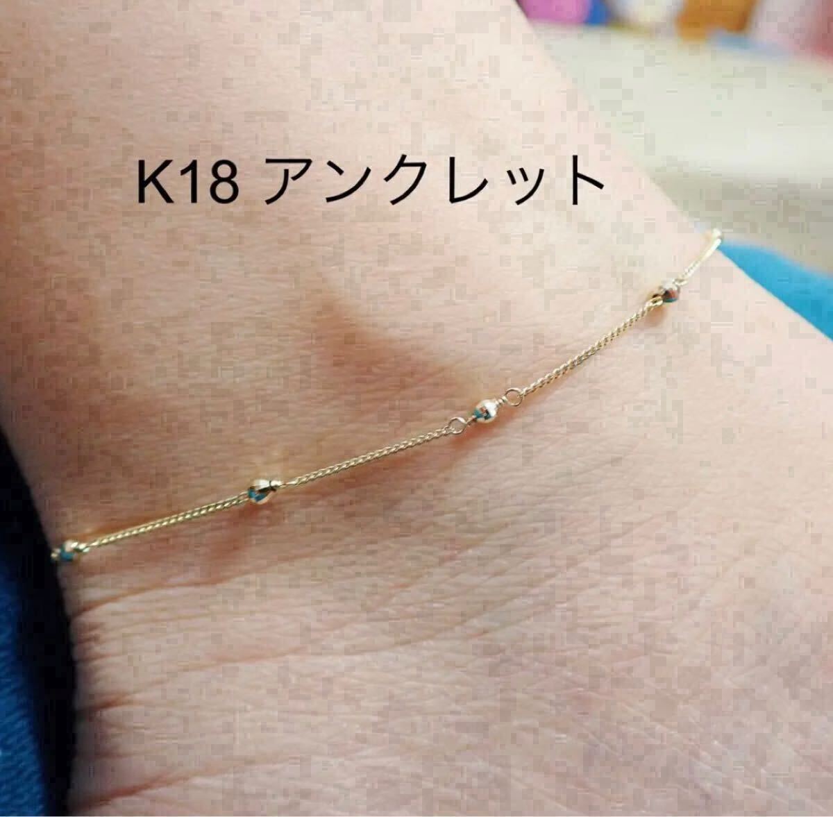 k18 26cm 喜平1mmブレスレット ステーションブレスレット アンクレット アジャスター付