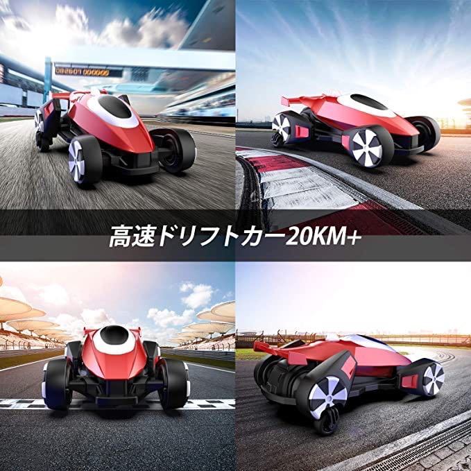 【操作時間30分・20km/h高速のラジコンカー】お子様の安全を考えて、触れることができない充電池をスタントカーに内蔵します。USBケーブルを使い、1時間で完全充電した後に、30分ほど運転持続することができます。20km/hの高速で、ドリフトのようなスピードが実感できます!2.4Ghz無線技術により、30米の操作はできます。