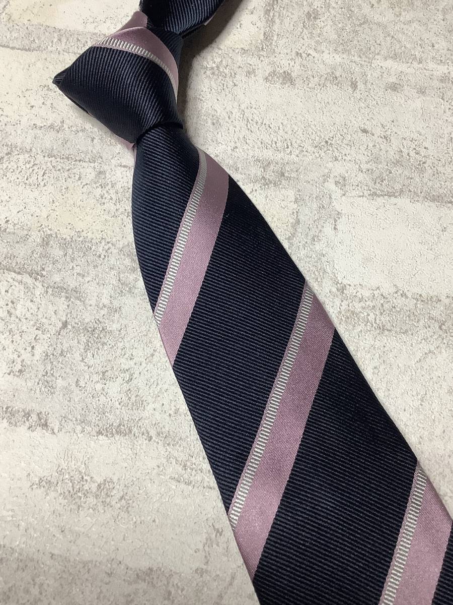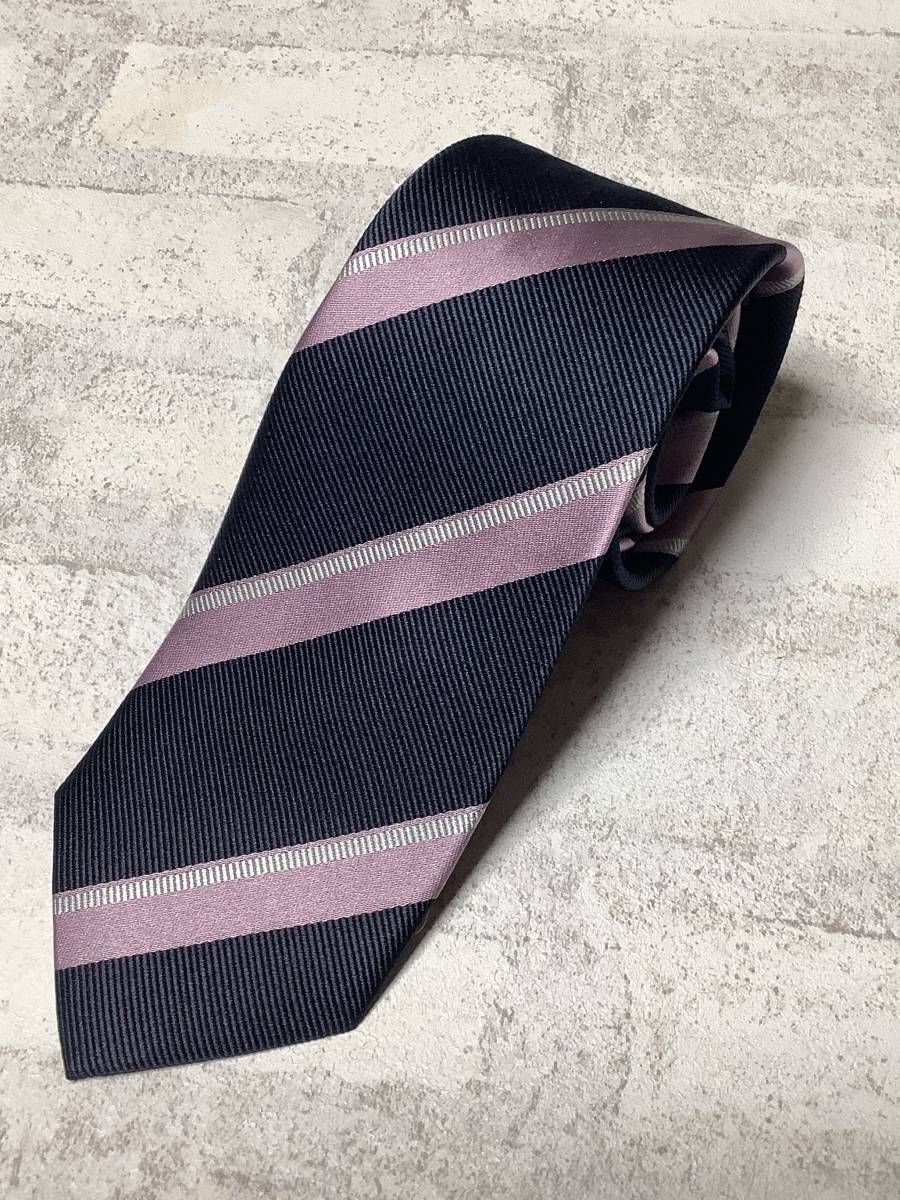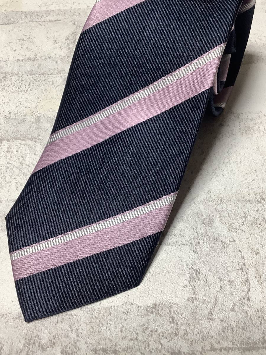 新品未使用★ネクタイ ★シルク100% ネイビー系 パープルストライプ柄  参考上代3,900〜4,900円 リクルート