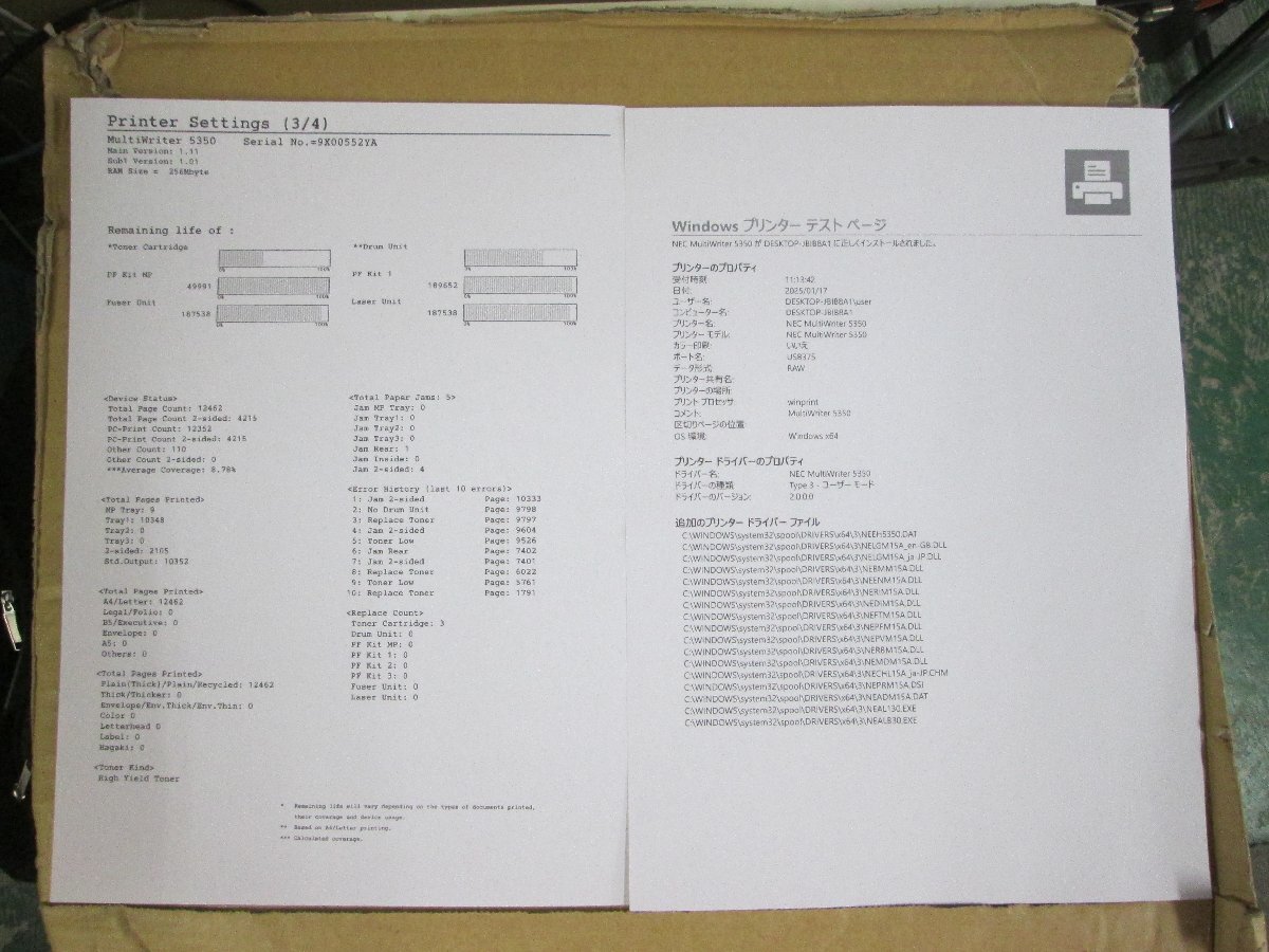| 商品名/型番 | 中古レーザープリンタ NEC MultiWriter 5350 WIFI(無線LAN)機能付き 中古トナー/ドラム付き |
