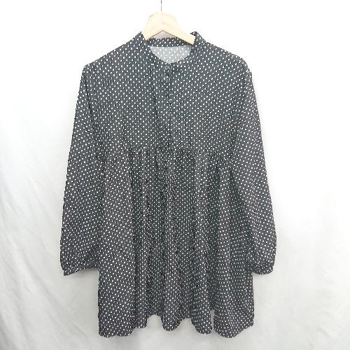◇ ⊂ DISCOAT ディスコート ドット柄 長袖 チュニック サイズF ブラック ホワイト レディース E