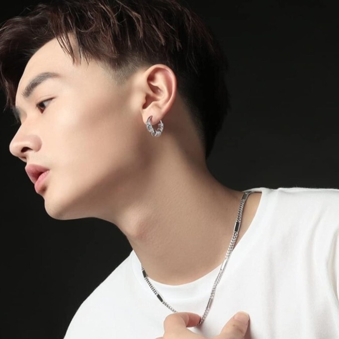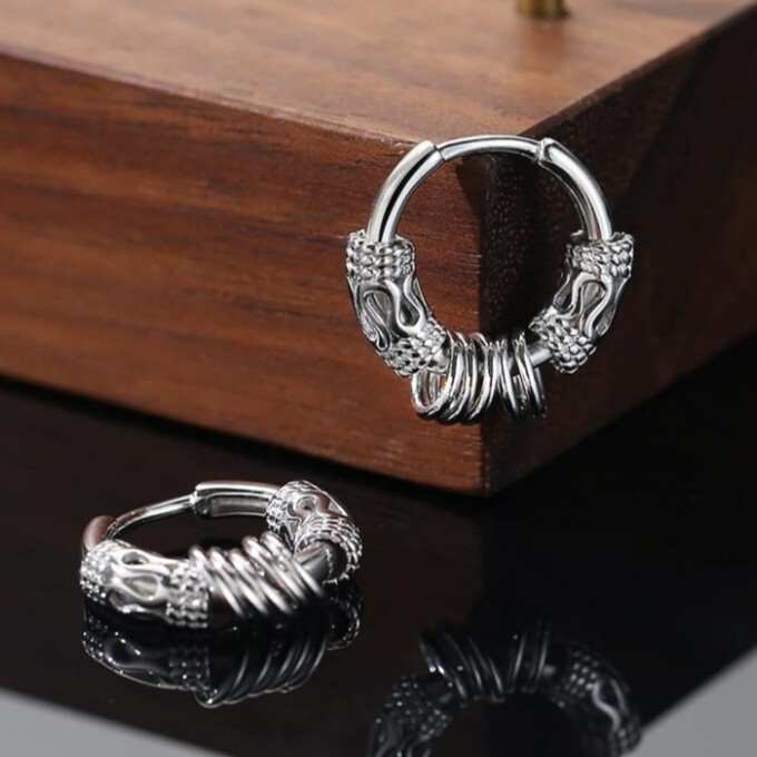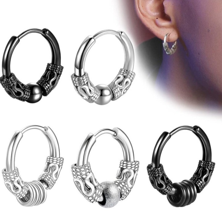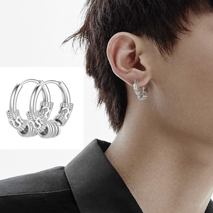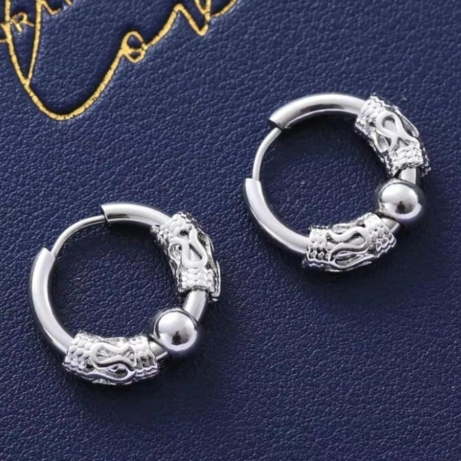 【龍紋フープピアス】シンプルで着用しやすい龍紋デザイン、派手過ぎず、地味過ぎない、ちょうど良い存在感が魅力のフープピアス,普段使いでもフォーマルでも大活躍する、人気の男女兼用ステンレスピアスです。