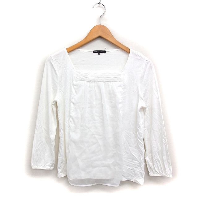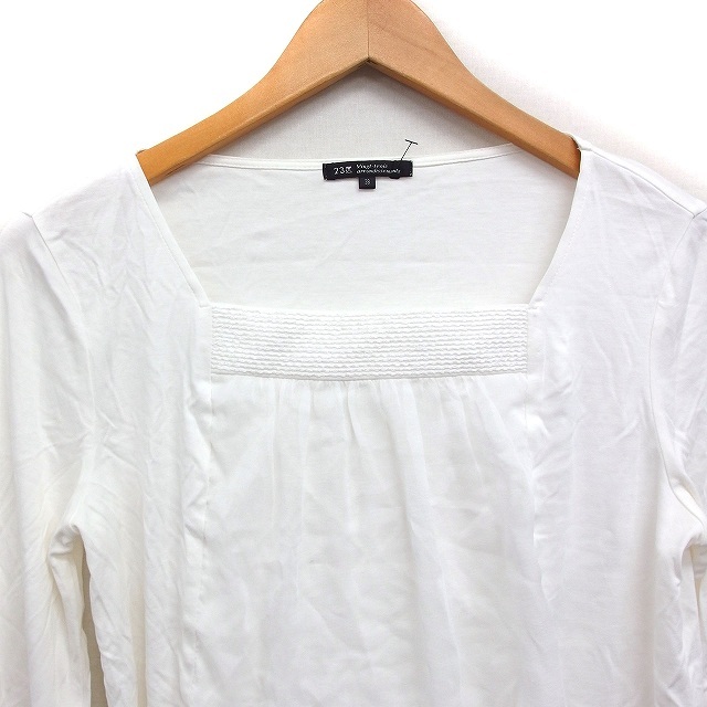 23区 オンワード樫山 シフォンレイヤード カットソー Tシャツ 七分袖 スクエアネック 38 ホワイト 白 /FT25 レディース