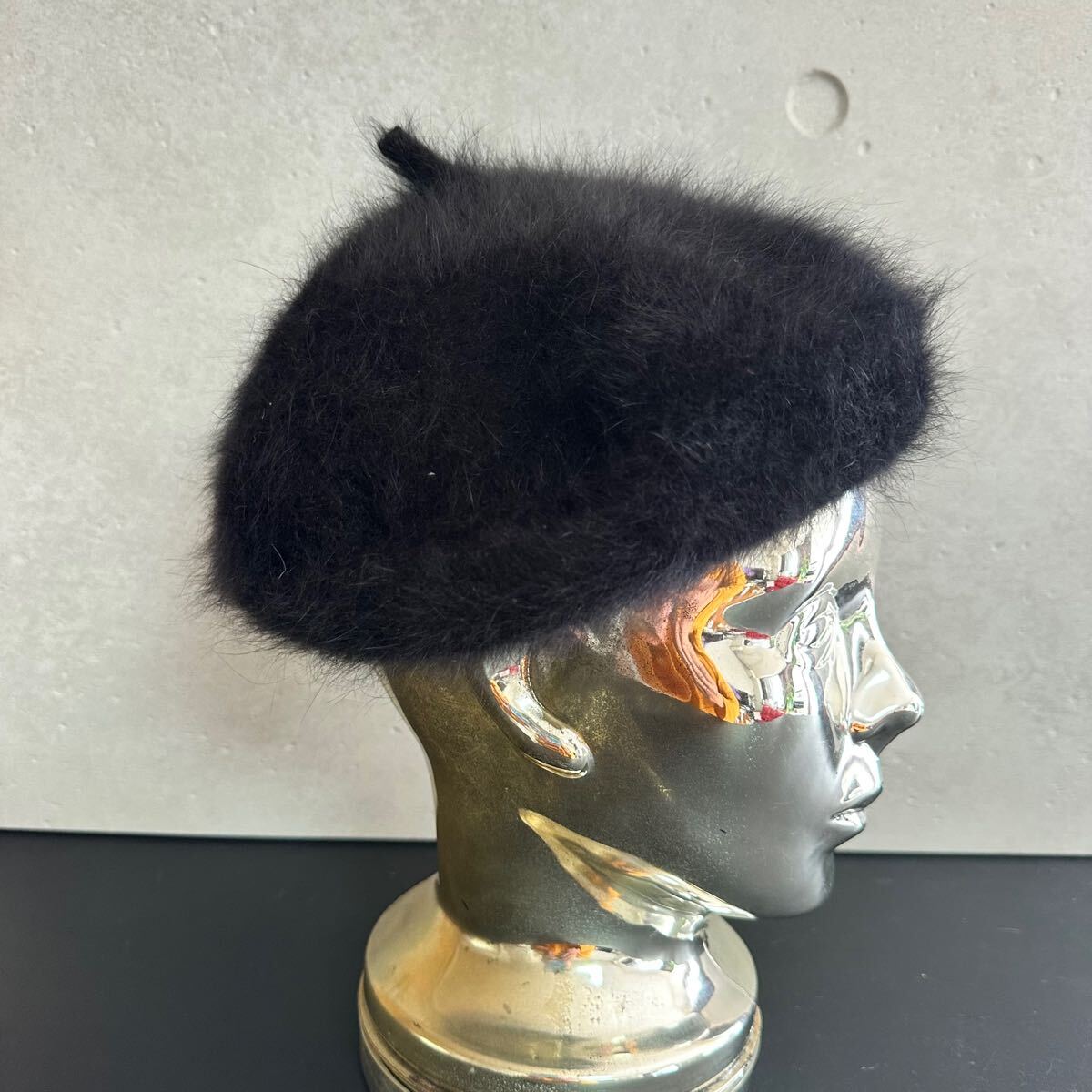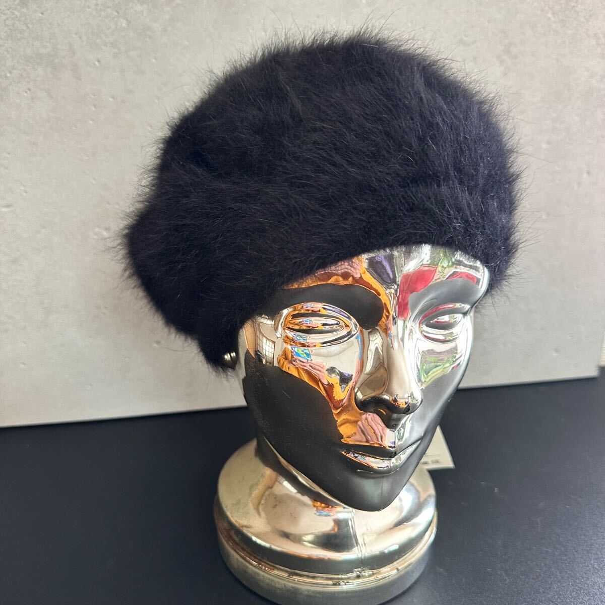 アンゴラ混ぜのふわふわベレー帽です。