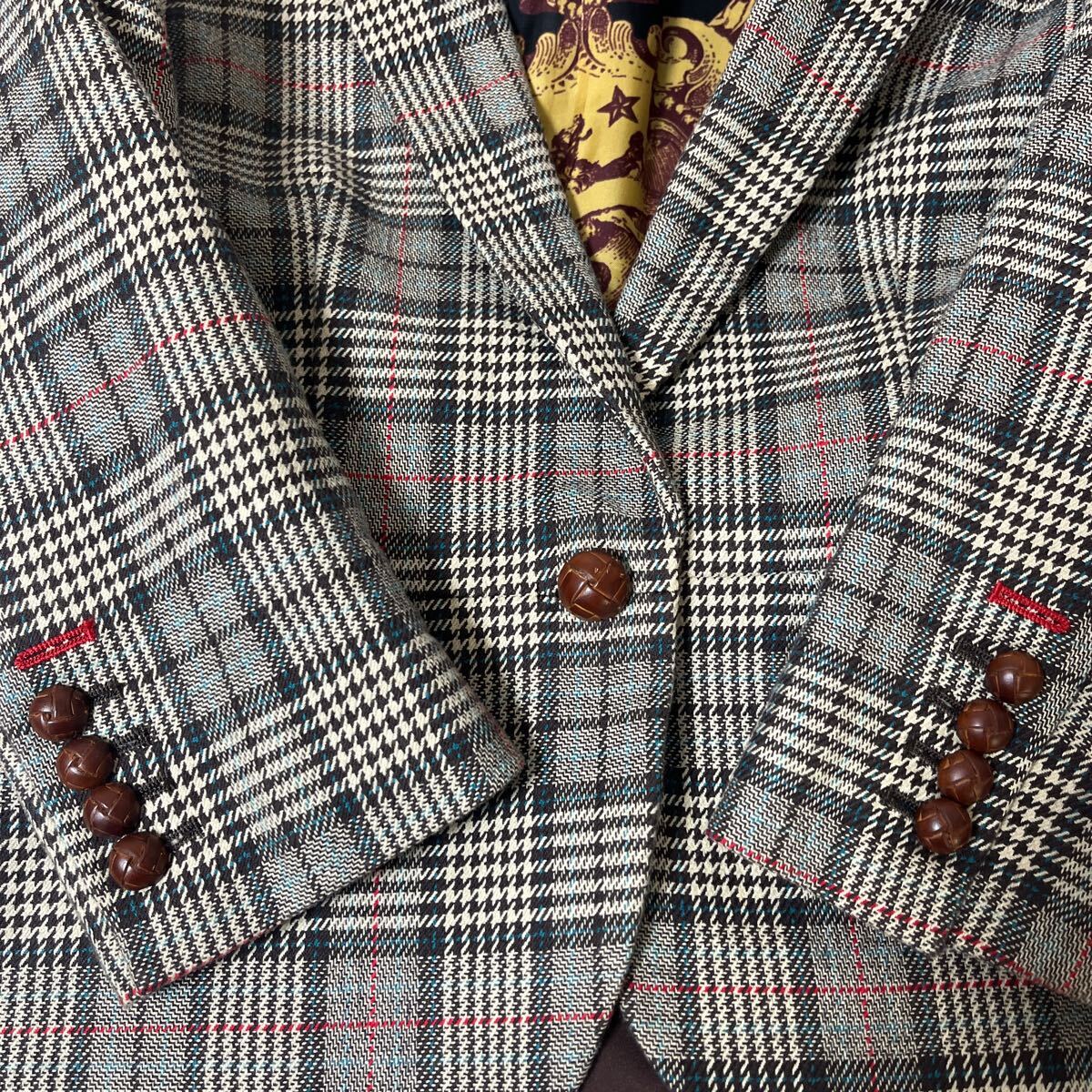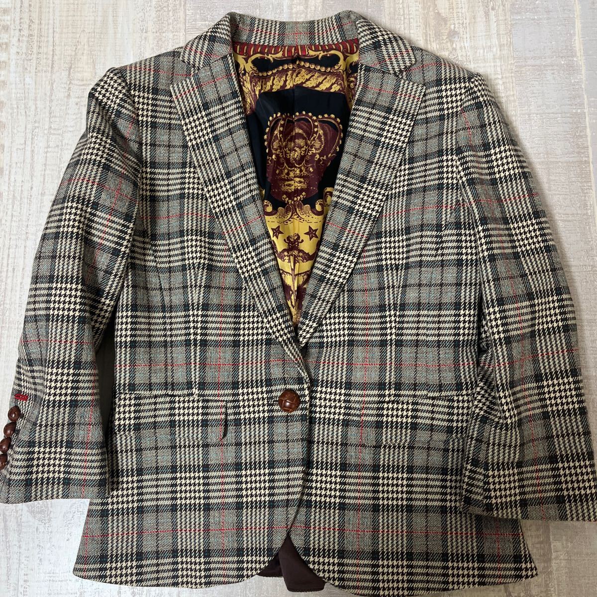 【日本製 裏地豪華 クルミ釦】DOUBLE STANDARD CLOTHING ツイード グレンチェック 1B テーラード ジャケット ダブルスタンダードクロージング ダブスタ サイズ36 M相当 レディース