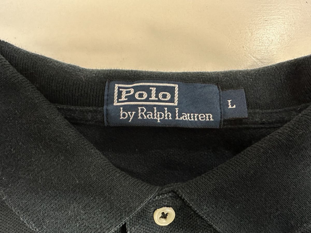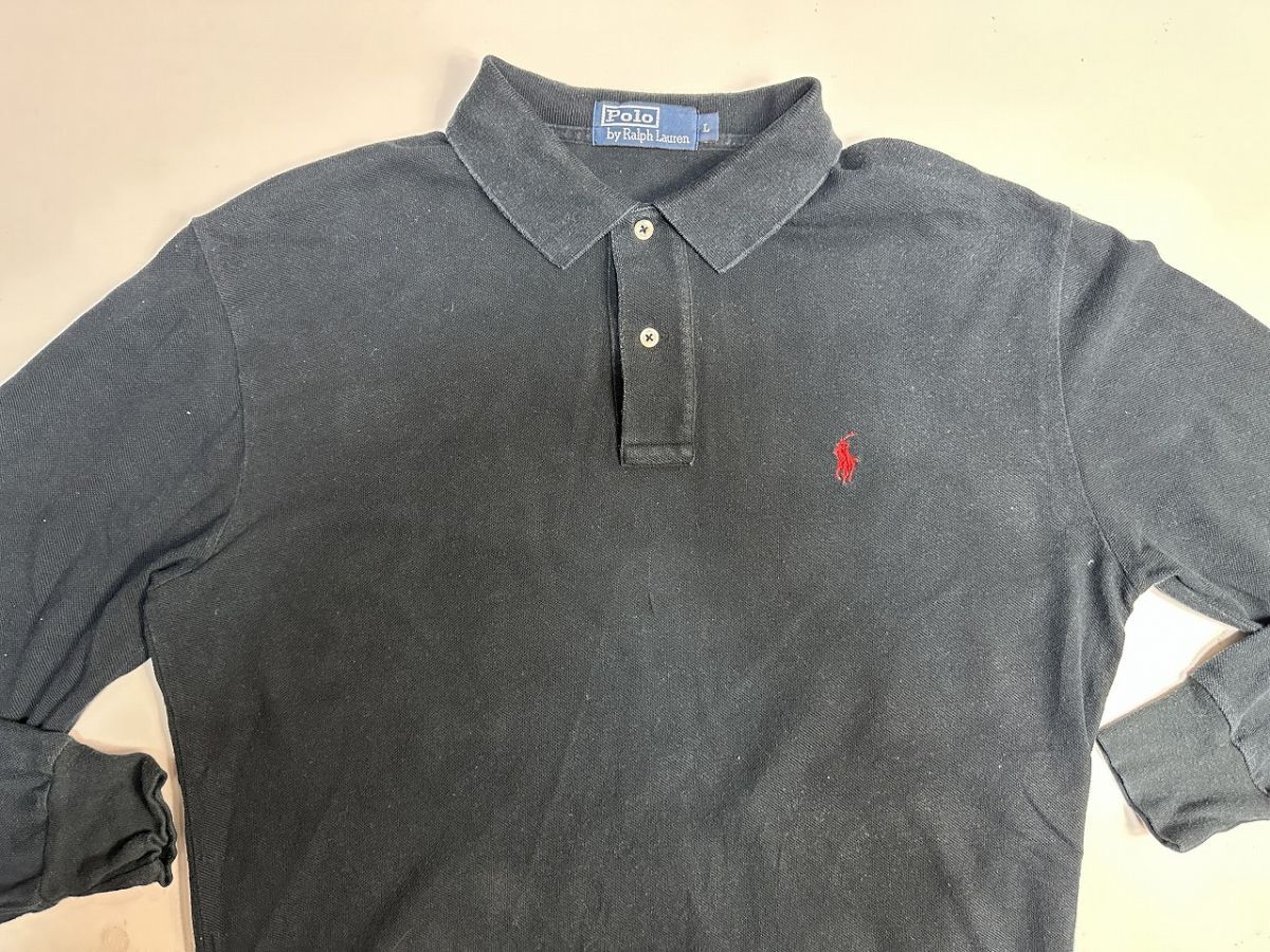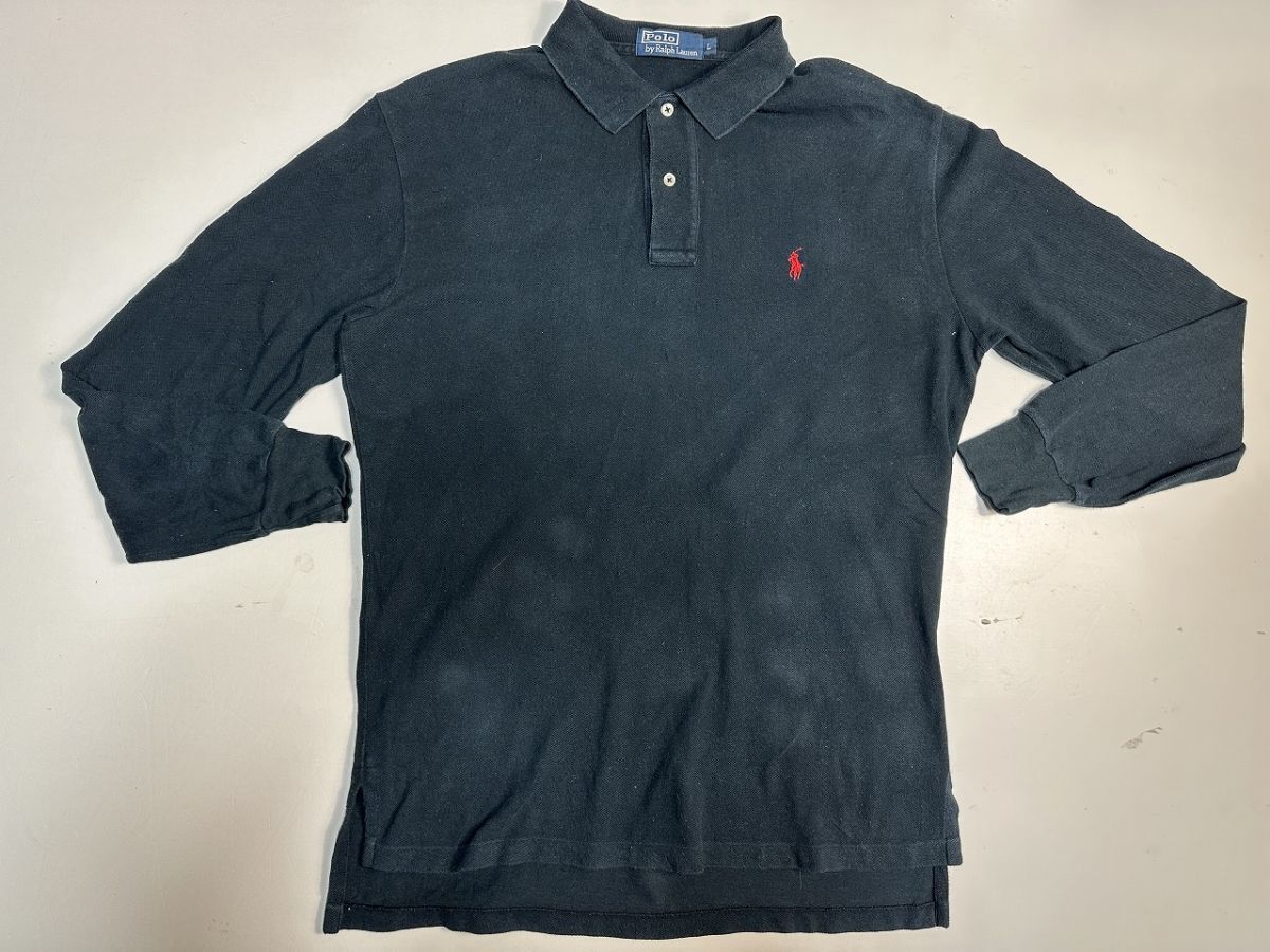 ●US USED POLO Ralph Lauren ラルフローレン ポロシャツ 長袖 ポニーロゴ刺繍 ネイビー紺【L】コットン