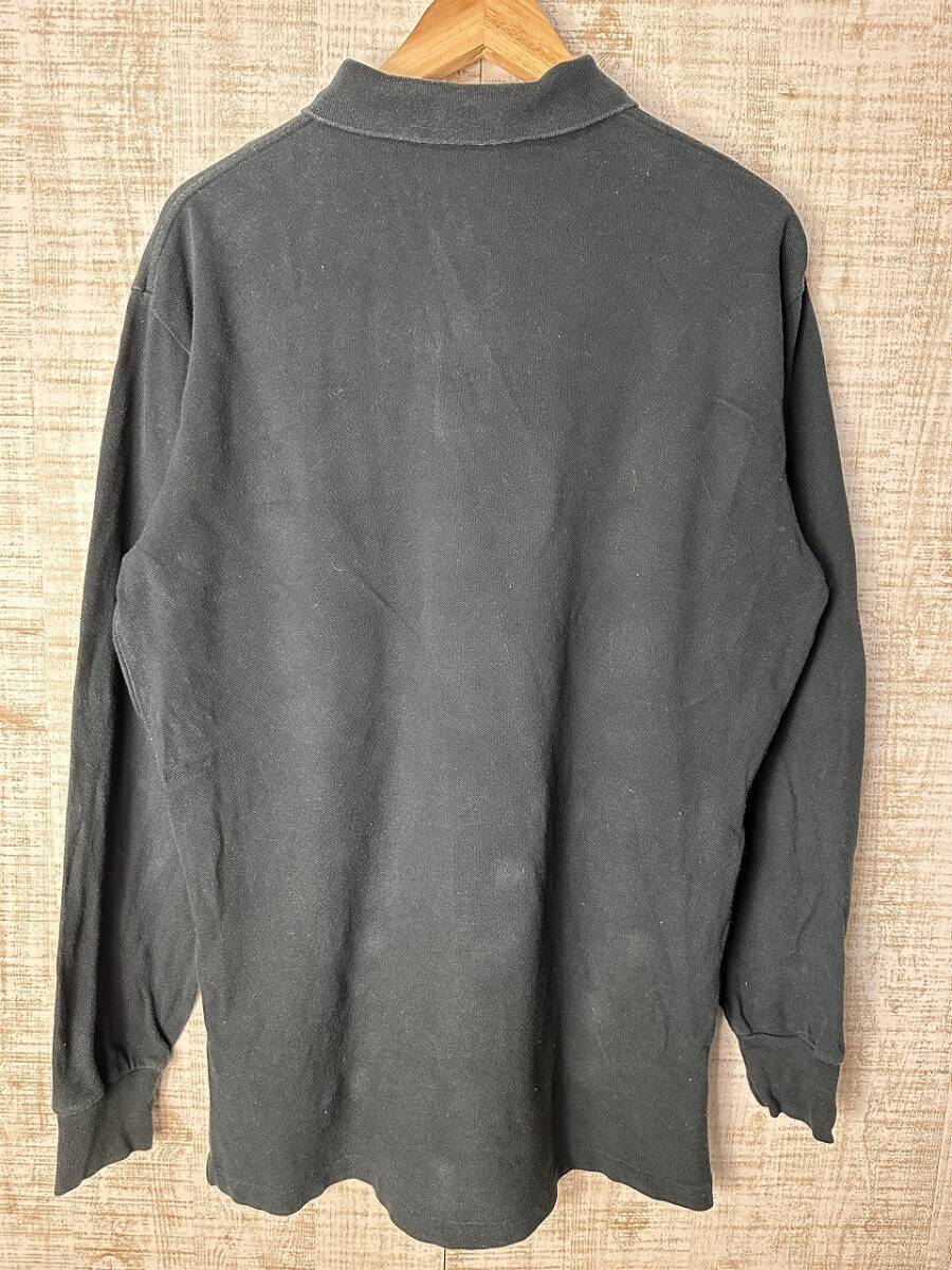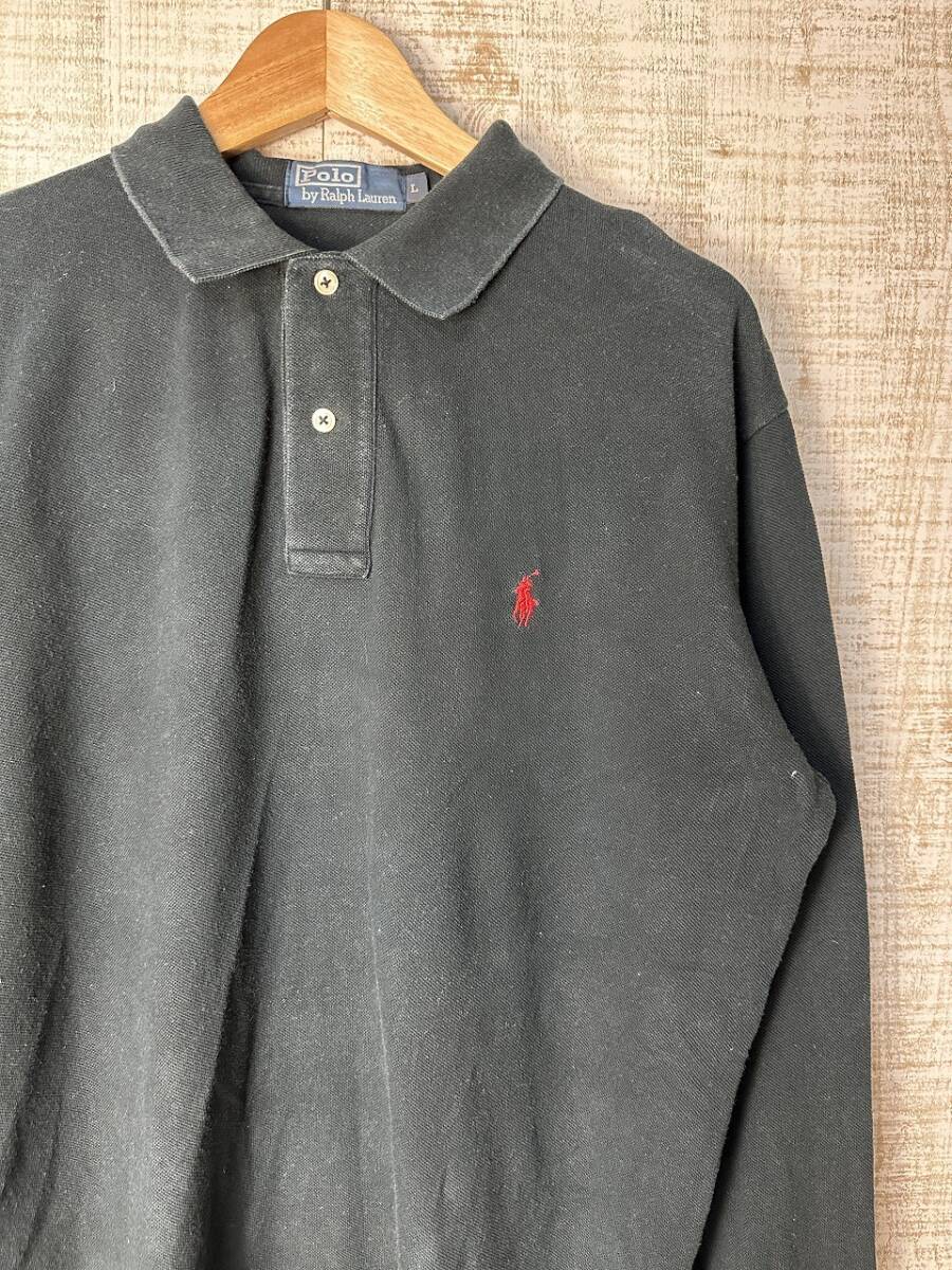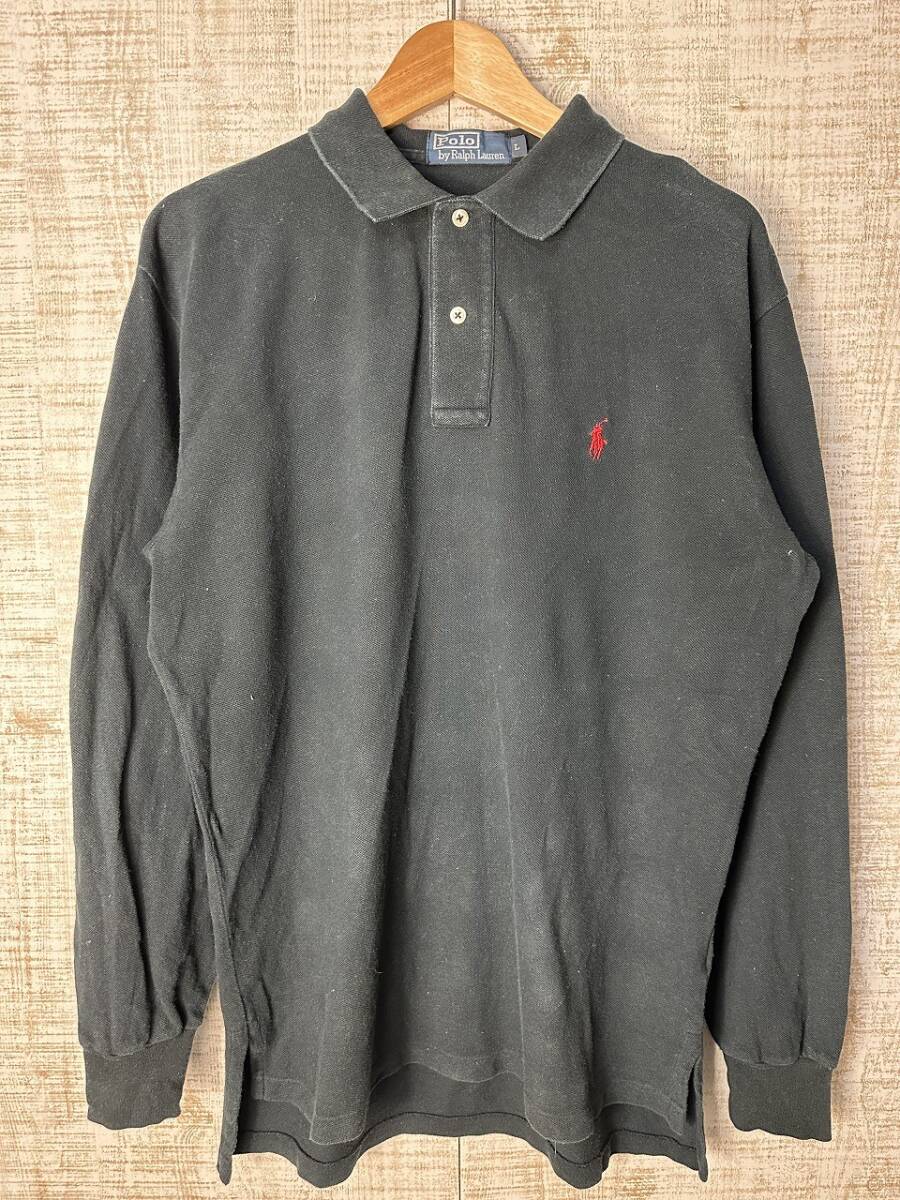 ●US USED POLO Ralph Lauren ラルフローレン ポロシャツ 長袖 ポニーロゴ刺繍 ネイビー紺【L】コットン