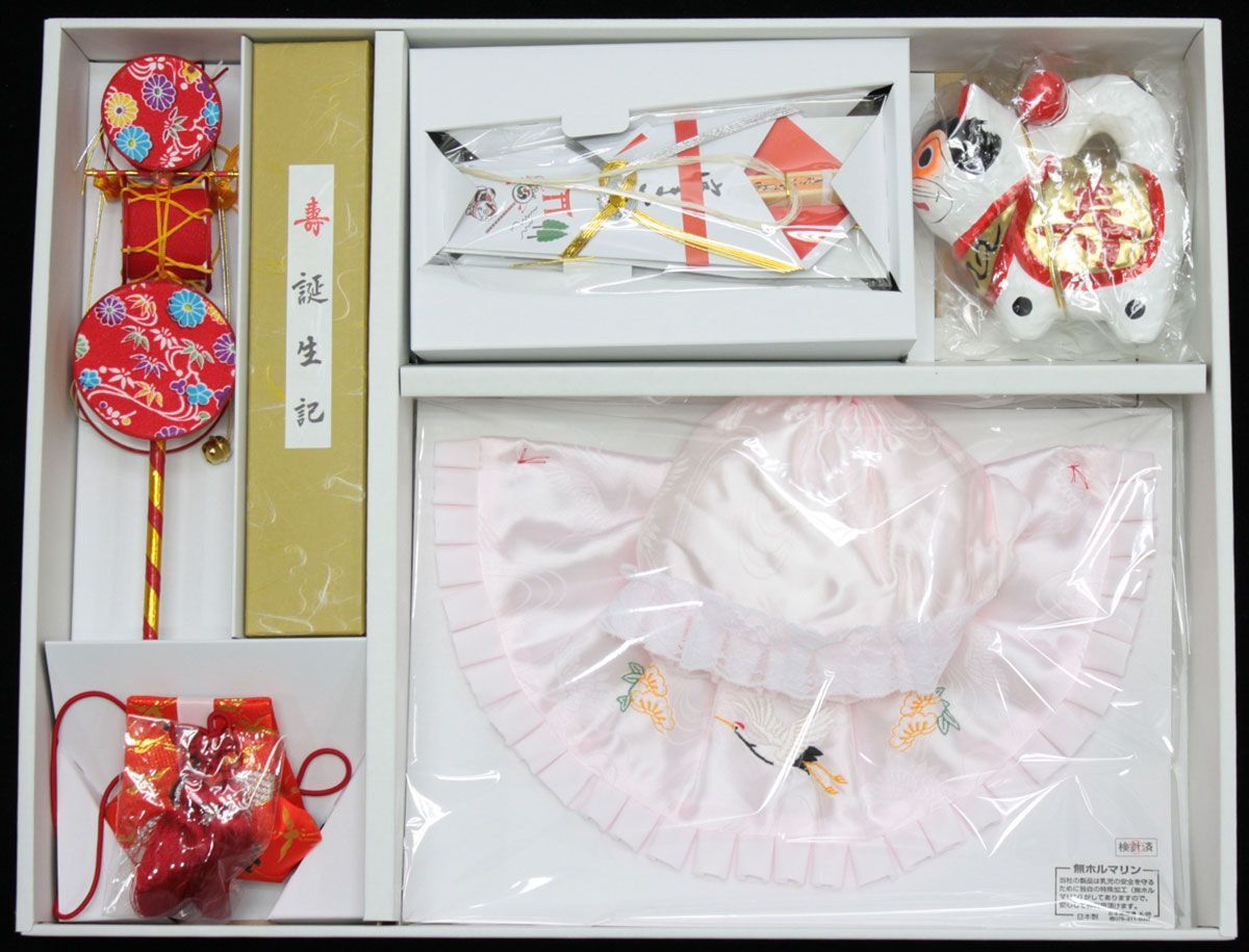 フード・よだれ掛け(刺繍入り)・お守り・扇子・犬張り子・でんでん太鼓・誕生記