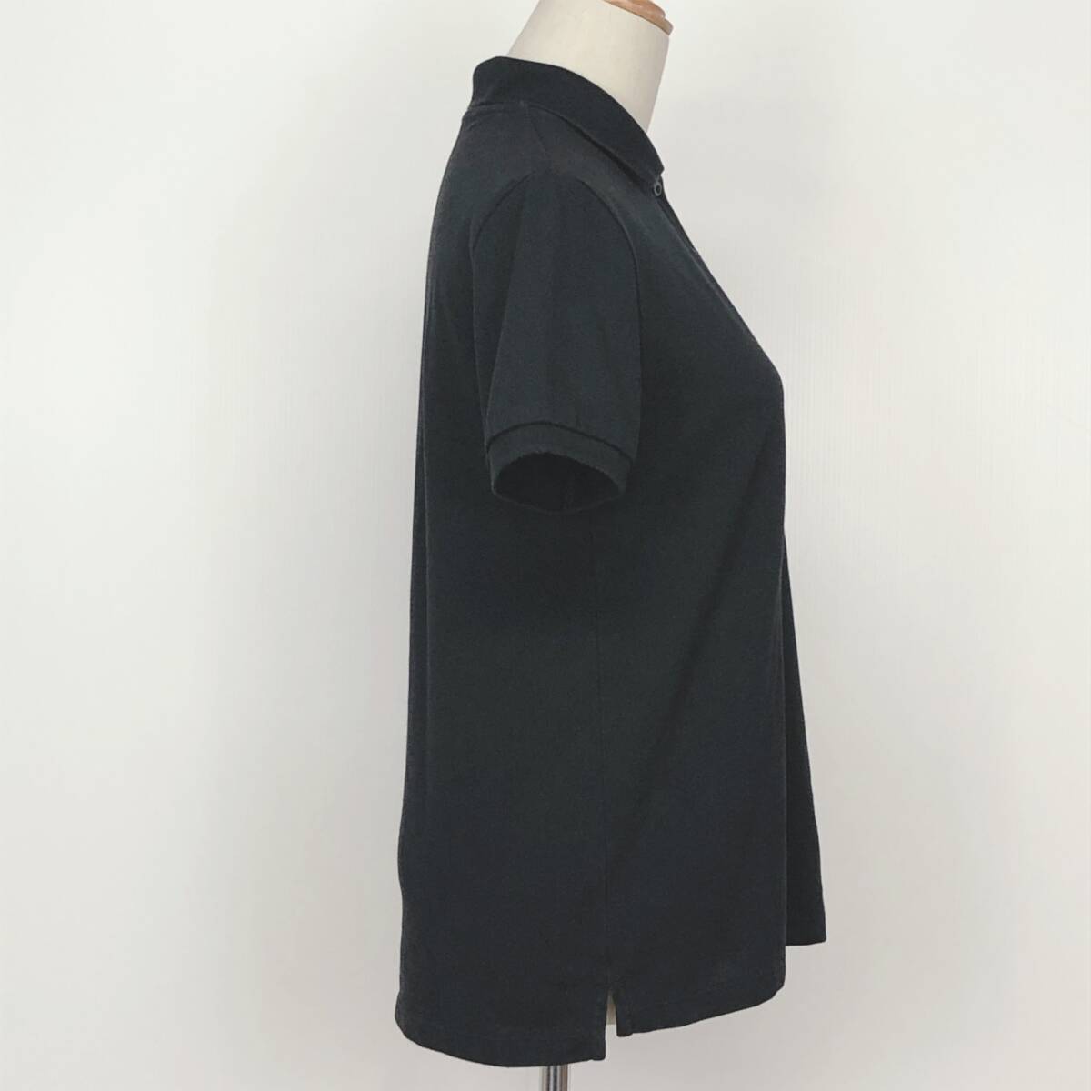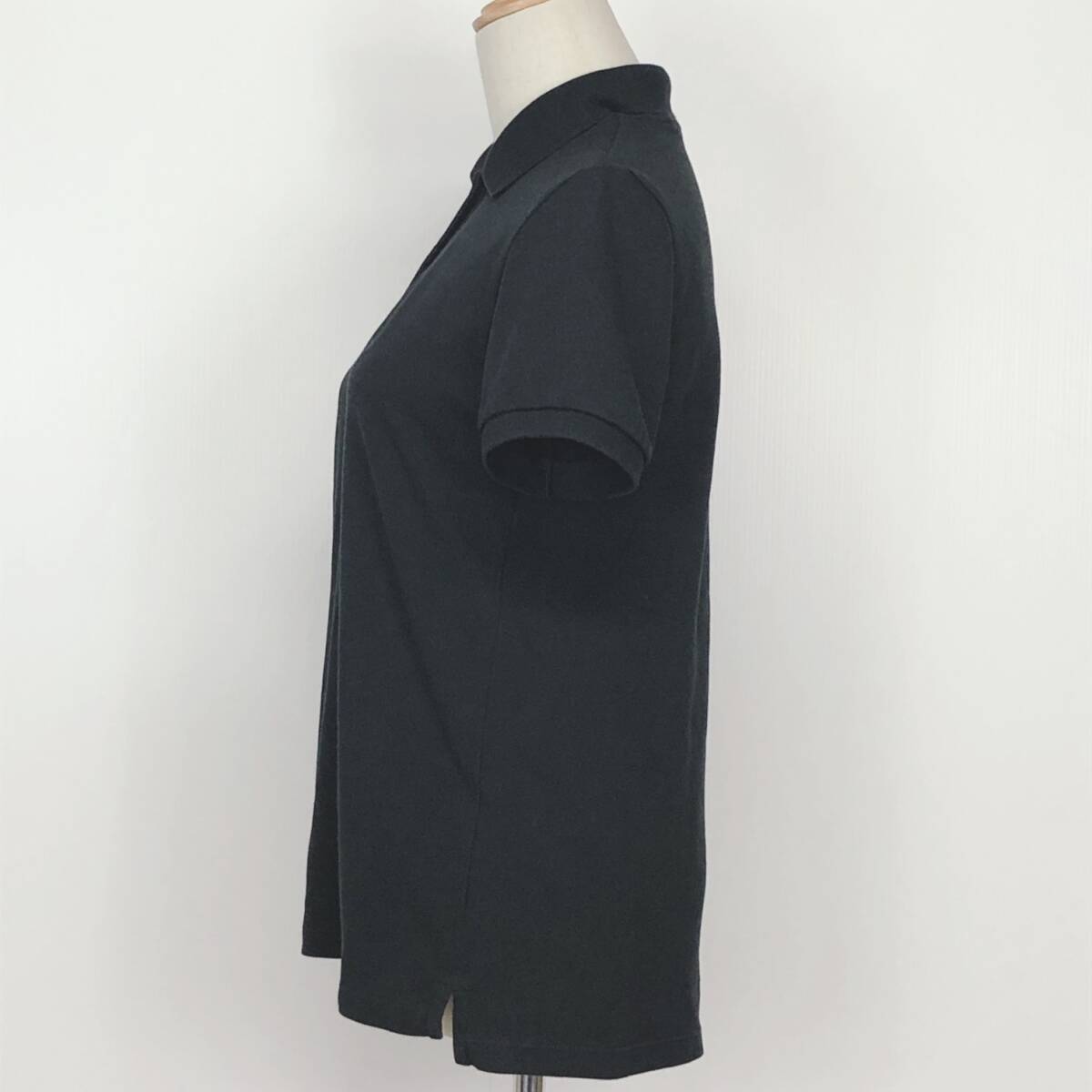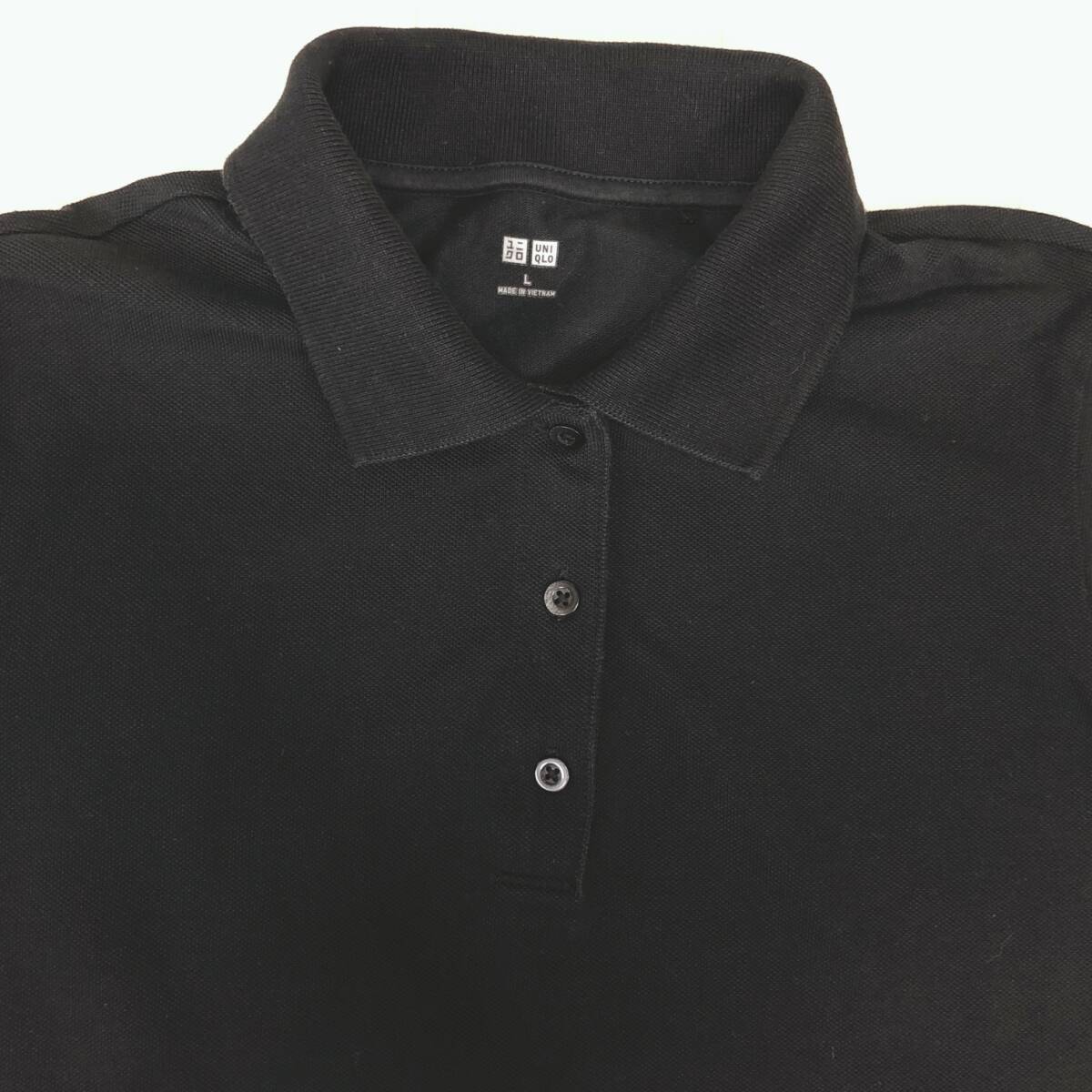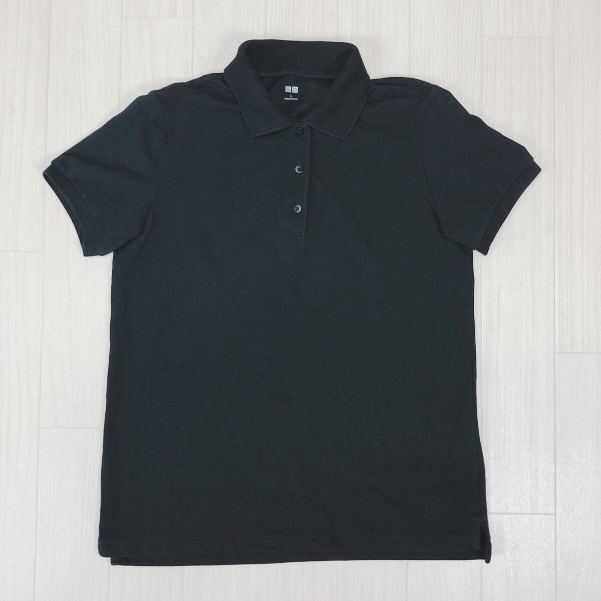 YX1281 UNIQLO(ユニクロ) レディース トップス ポロシャツ 半袖 スリット ベトナム製 リブ袖 薄手 伸縮性 L ブラック 無地 綿 シンプル