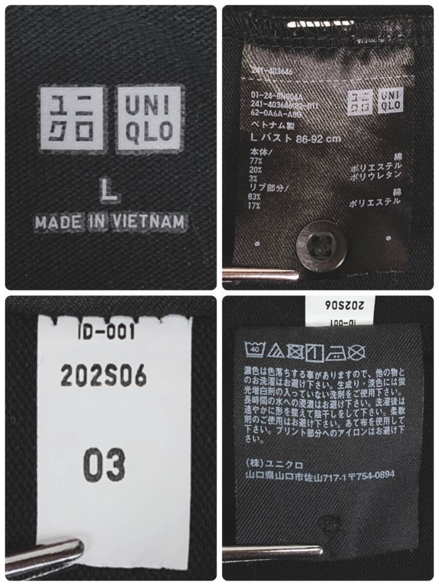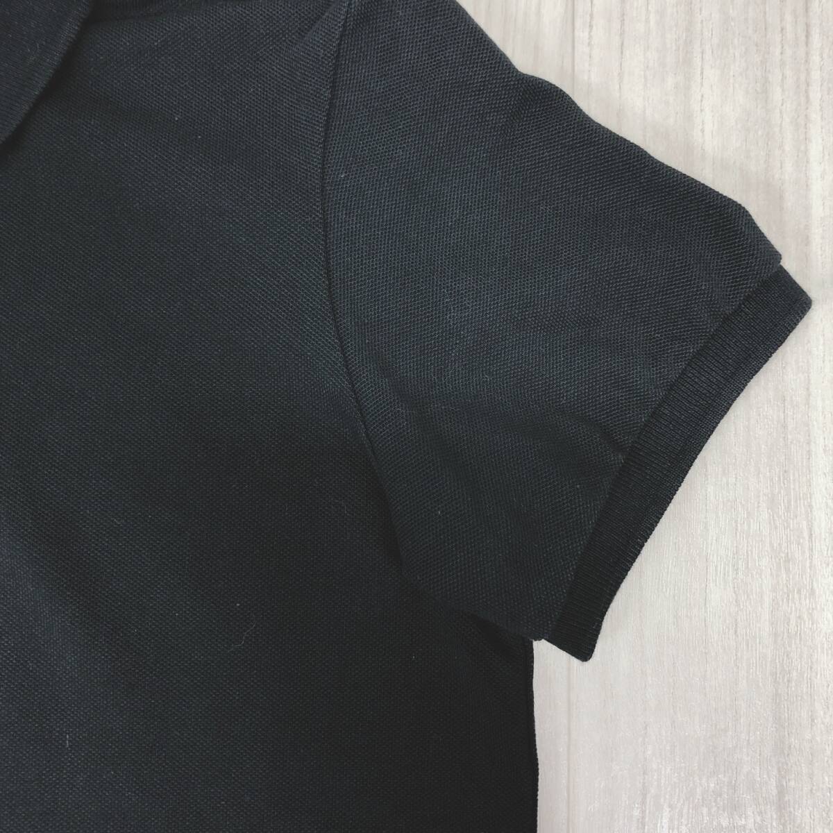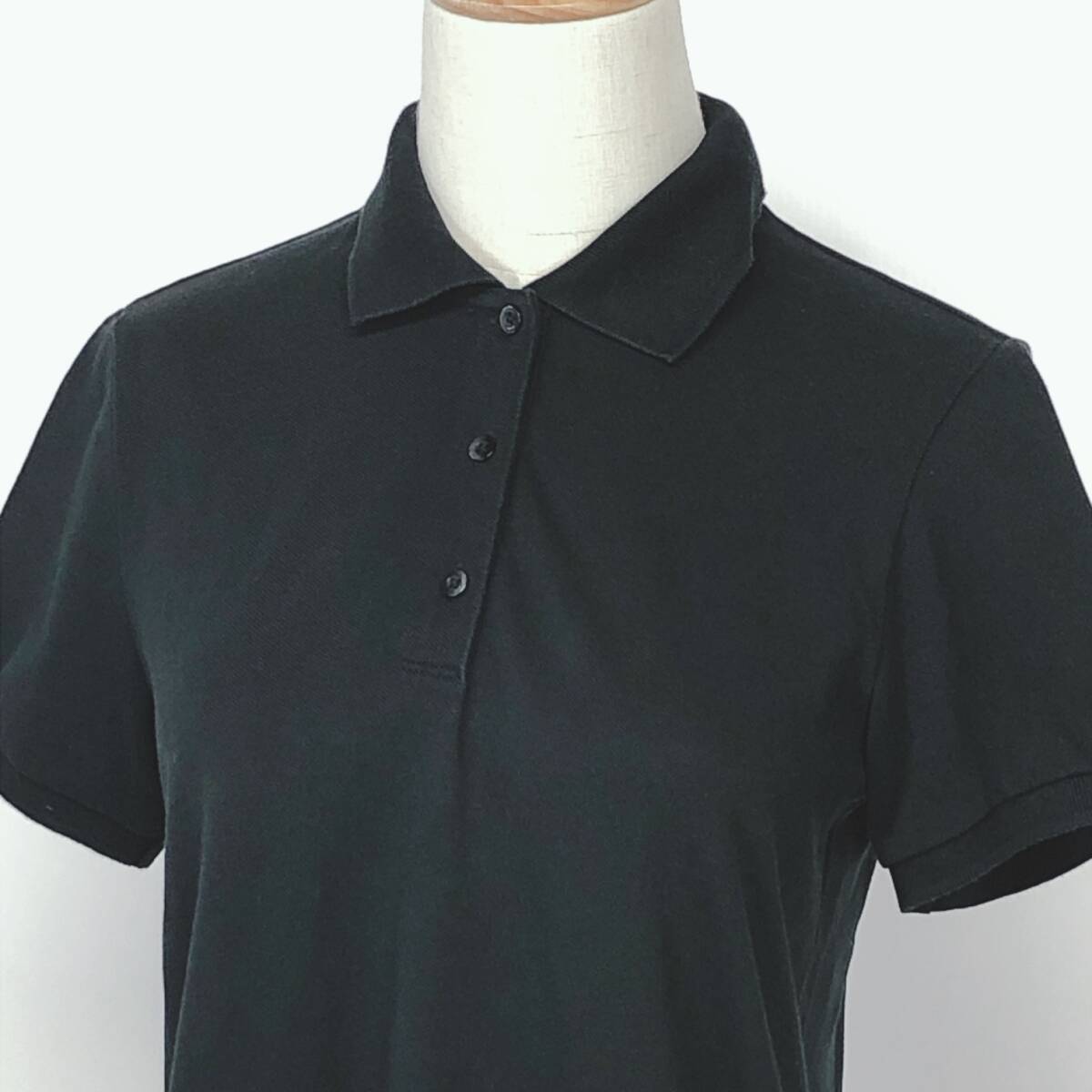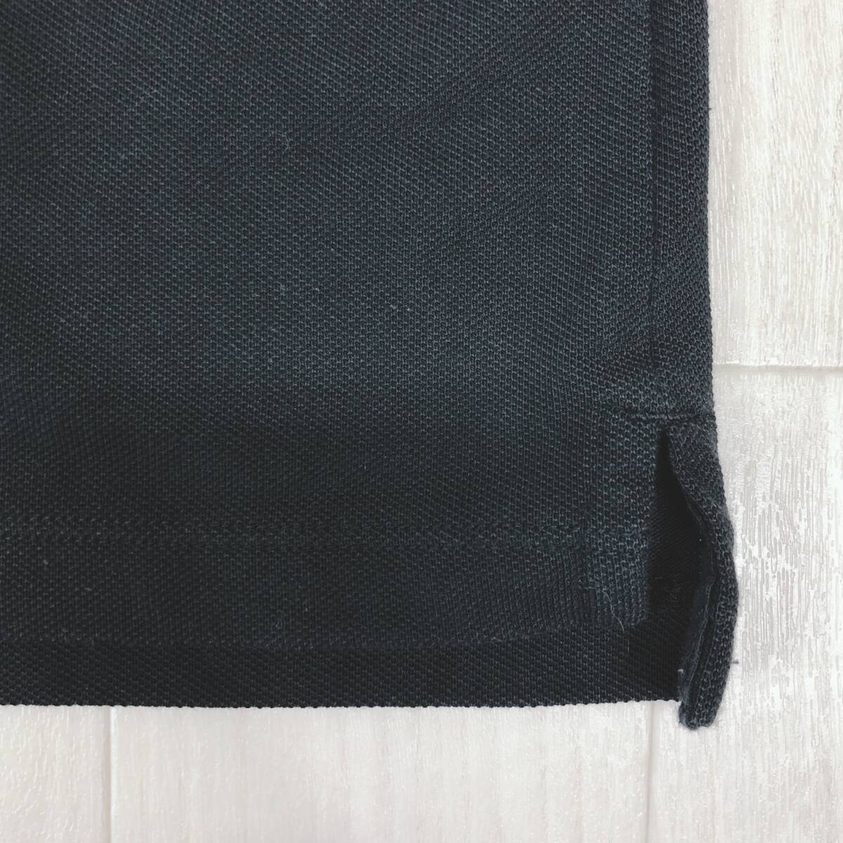 YX1281 UNIQLO(ユニクロ) レディース トップス ポロシャツ 半袖 スリット ベトナム製 リブ袖 薄手 伸縮性 L ブラック 無地 綿 シンプル
