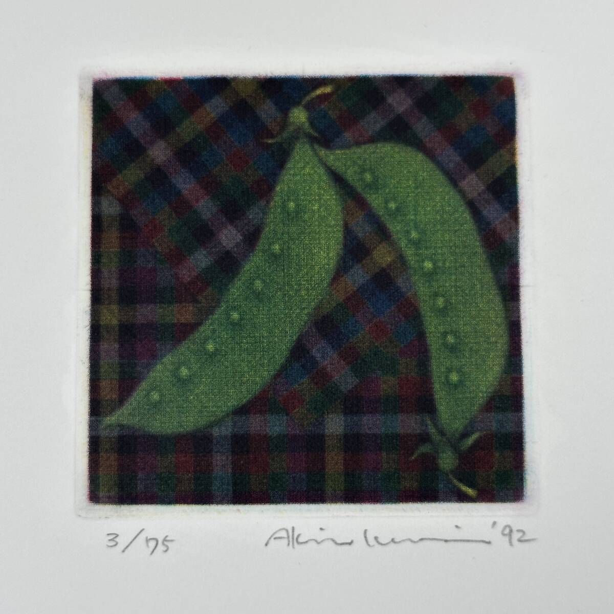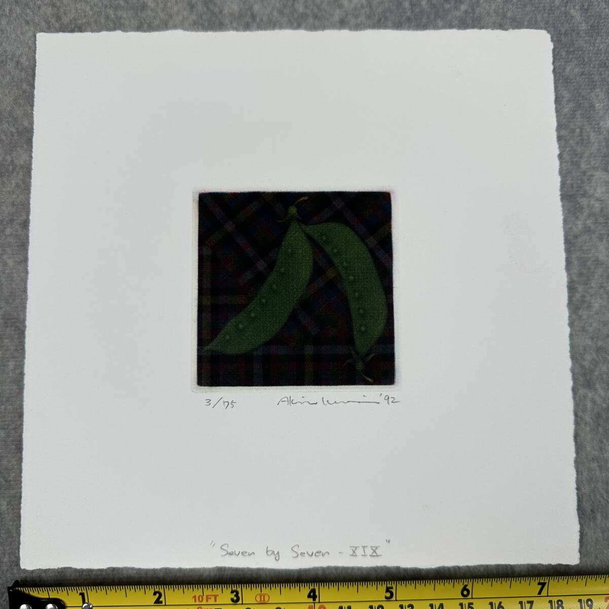 商品名: 【真作】金崎 曙「Seven by Seven XIX」カラーメゾチント 銅版画 ED 3/75 シートのみ 静物画 さやえんどう