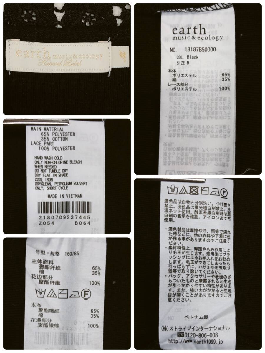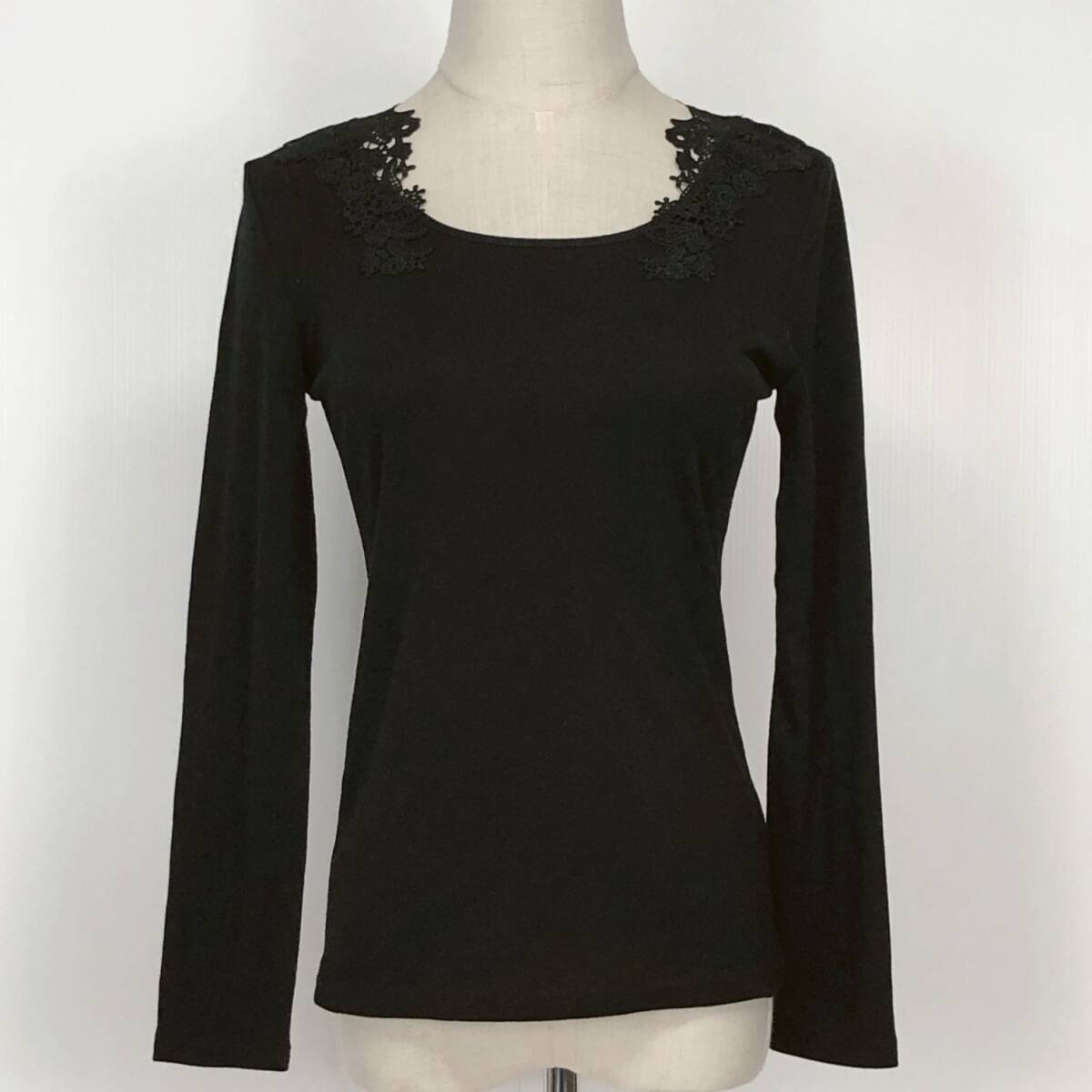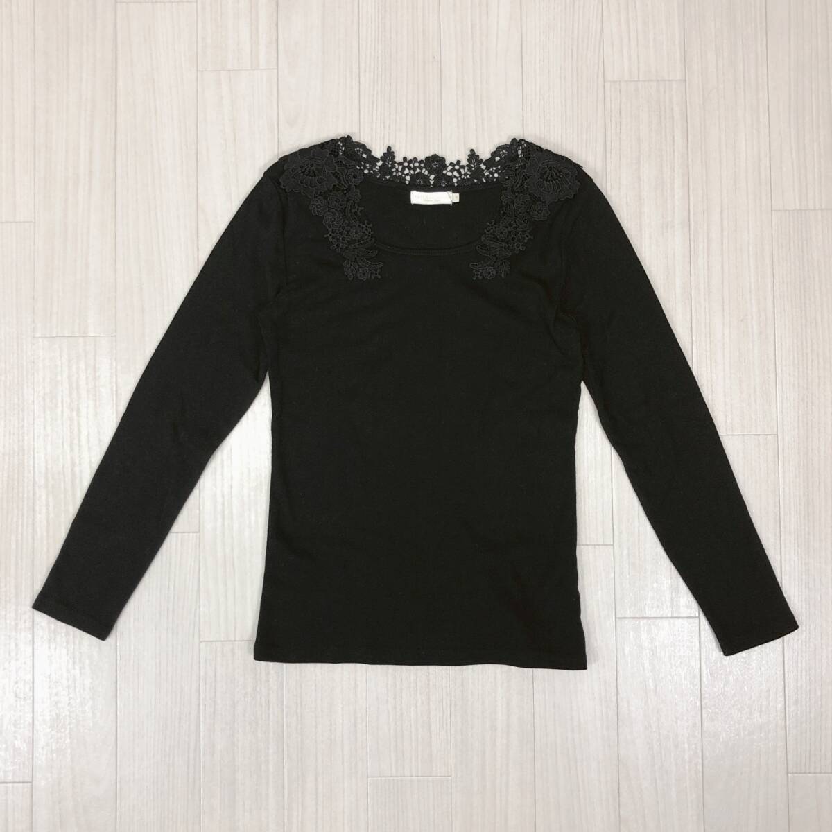 YX1272 美品 earth music&ecology レディース トップス ブラウス 長袖 薄手 伸縮性 レース M 綿素材含 かわいい シック おしゃれ 春秋
