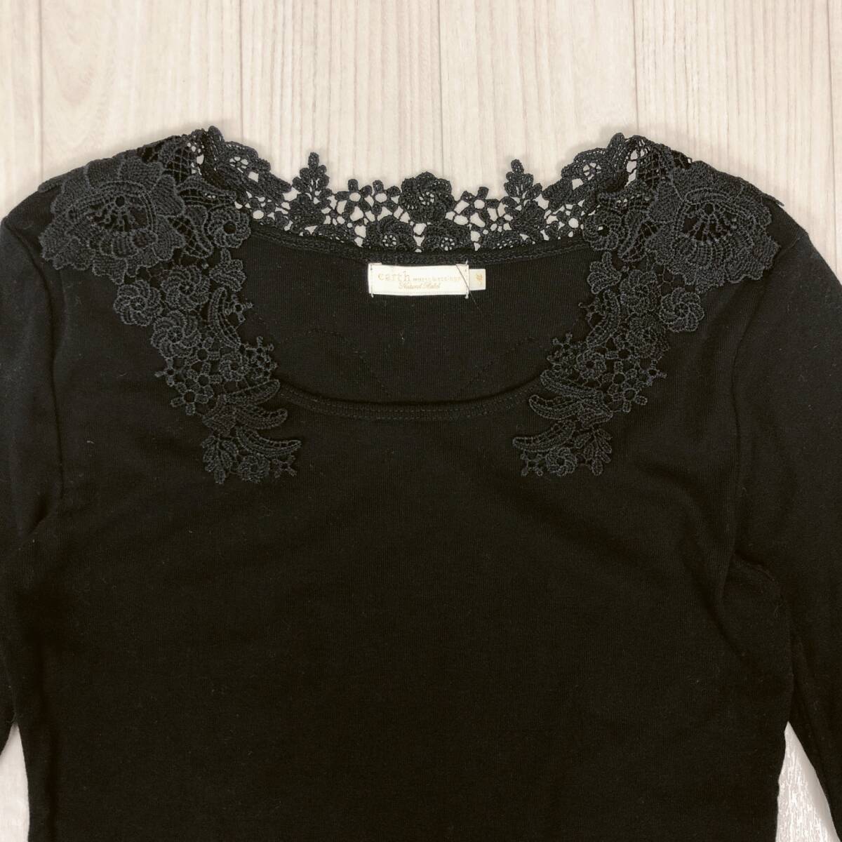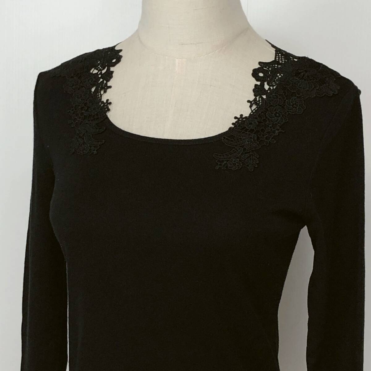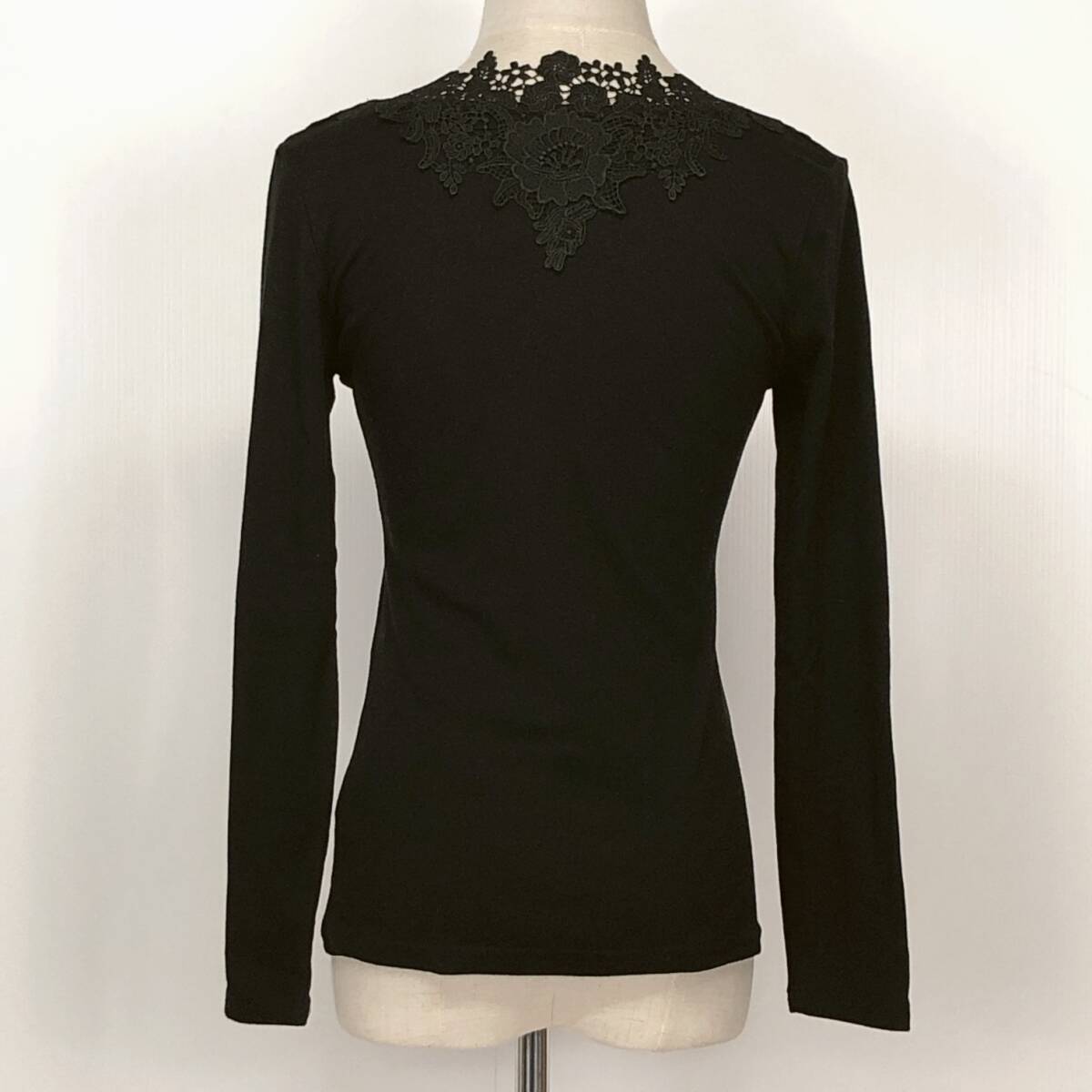 YX1272 美品 earth music&ecology レディース トップス ブラウス 長袖 薄手 伸縮性 レース M 綿素材含 かわいい シック おしゃれ 春秋