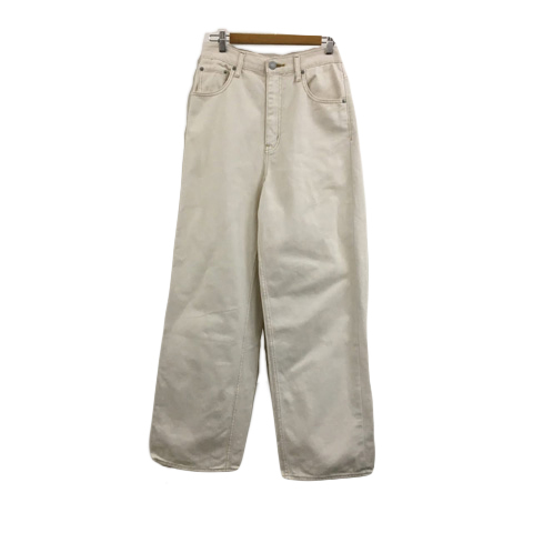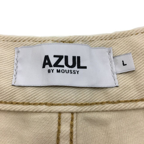 アズールバイマウジー AZUL by moussy パンツ デニム ジーンズ ワイド ロング ジップフライ 無地 ハイウエスト L 白 ホワイト レディース
