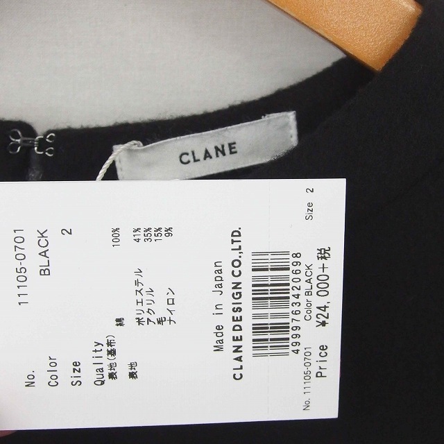 未使用品 クラネ CLANE タグ付き トレーナー ビッグシルエット ウール混 厚手 長袖 2 黒 ブラック /TT レディース