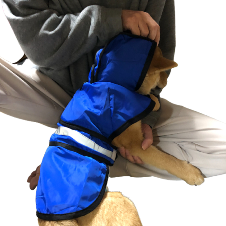 【着脱簡単】ご愛犬の頭や足を通すことなくて着用でき、マジックテープで留めるので、毛は巻き込みにくく、出掛ける前にさっと着せられ、着用しやすいです。
