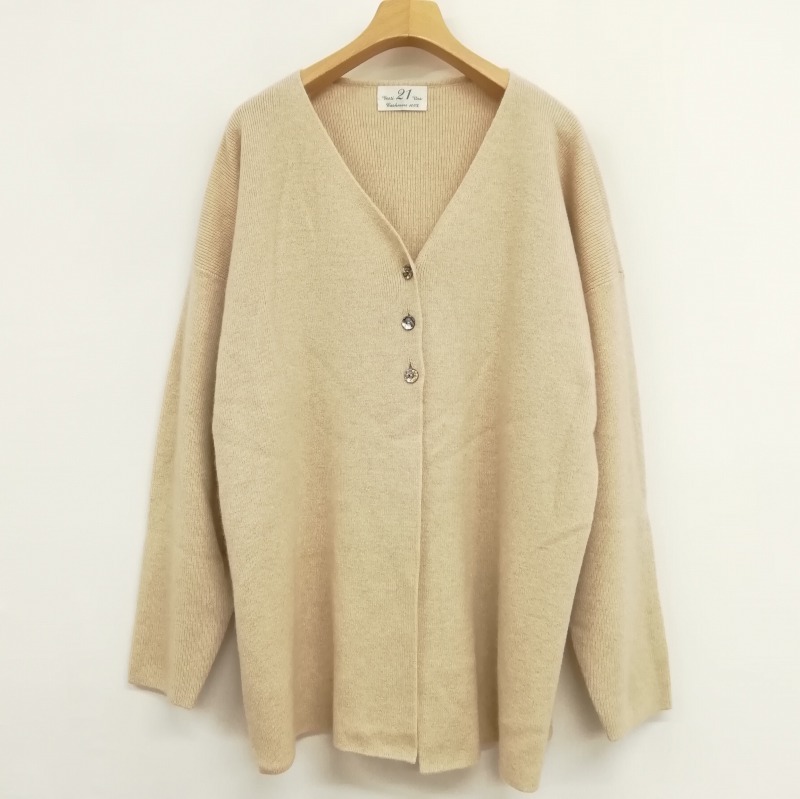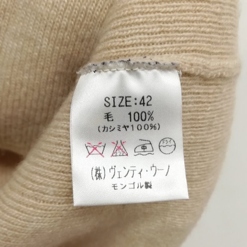 ヴェンティウーノ Venti Uno カシミヤ ニット カーディガン Vネック 42 ベージュ レディース